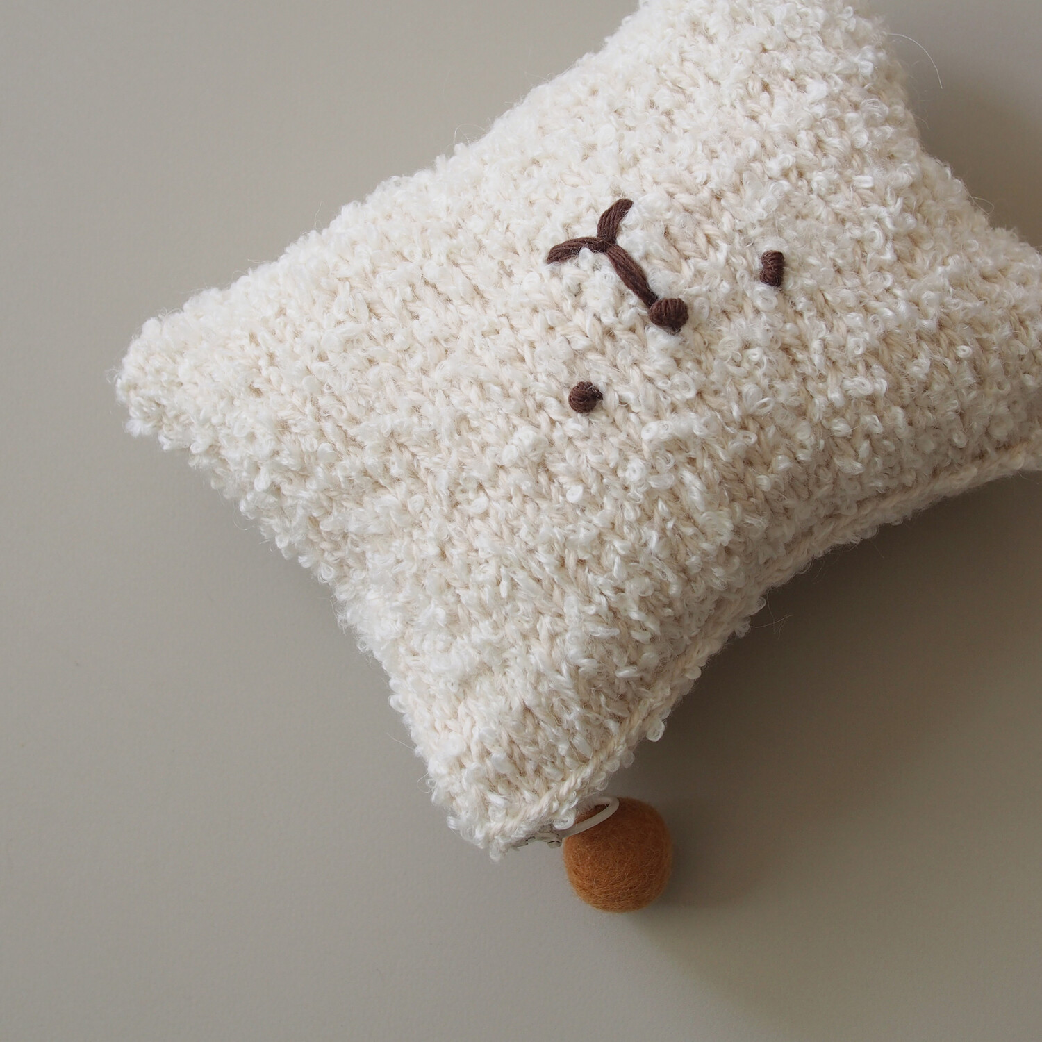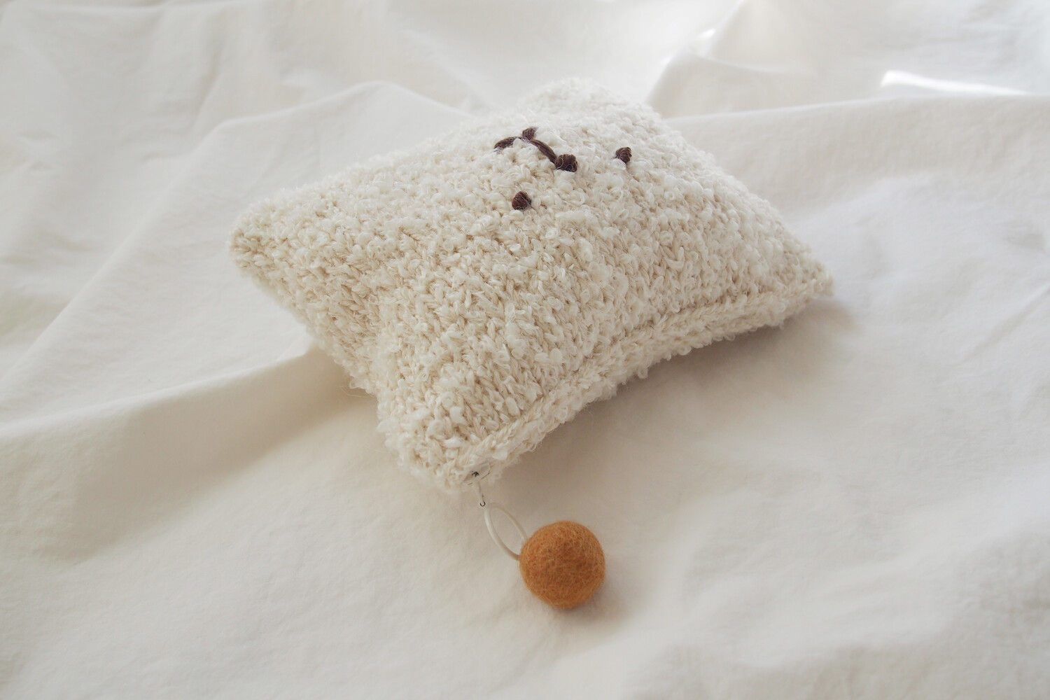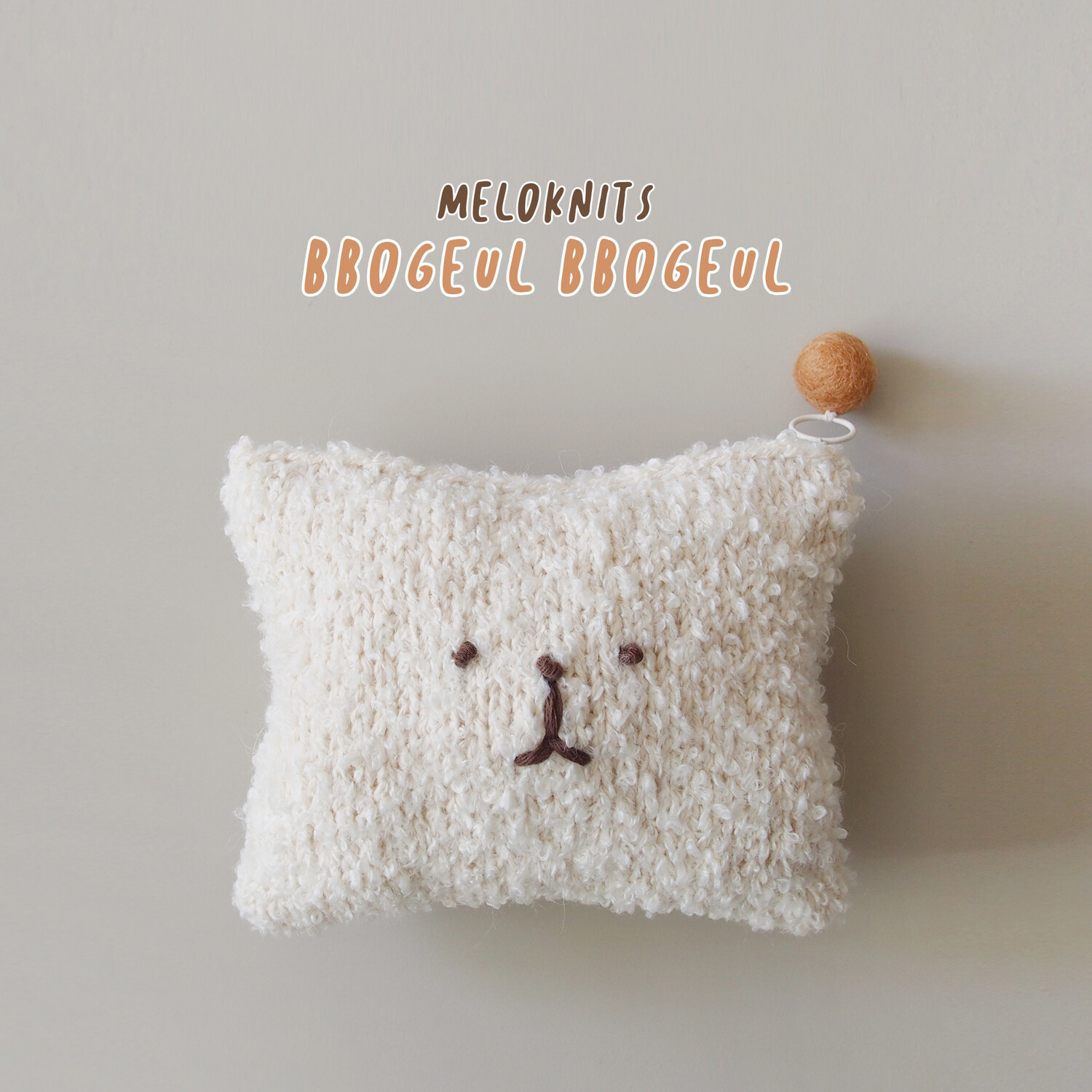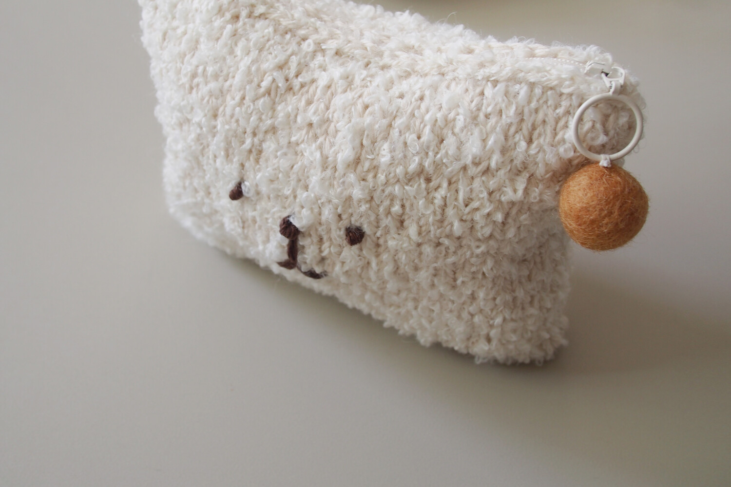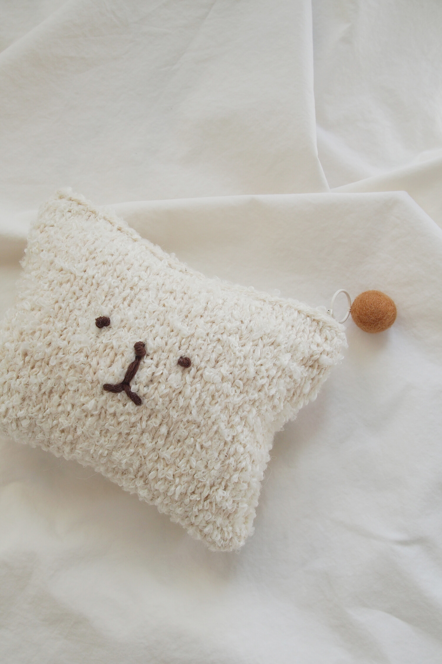 너무너무 귀여운 뽀글뽀글 곰돌이 파우치예요. 링구사를 합사해서 귀여운 느낌으로 완성했습니다. 손에 닿는 감촉도 너무 귀엽고요. 어쩐지 뚱해보이기까지 하는 귀여운 표정도 귀엽습니다. 멜로닛츠의 파우치를 많이 떠보신 분들은 전혀 어려움이 없을 파우치고요. 그저 원통뜨기로 뜨기만 하면 되는 쉬운 디자인입니다. 물론 링구사의 특성때문에 코를 조금 신경써서 뜨셔야 하긴 하지만 단순한 패턴이라서 어려움 없이 뜨실 수 있을거예요. 스티치로 표정을 완성하면 끝! 지퍼와 펠트볼로 완성해주세요~