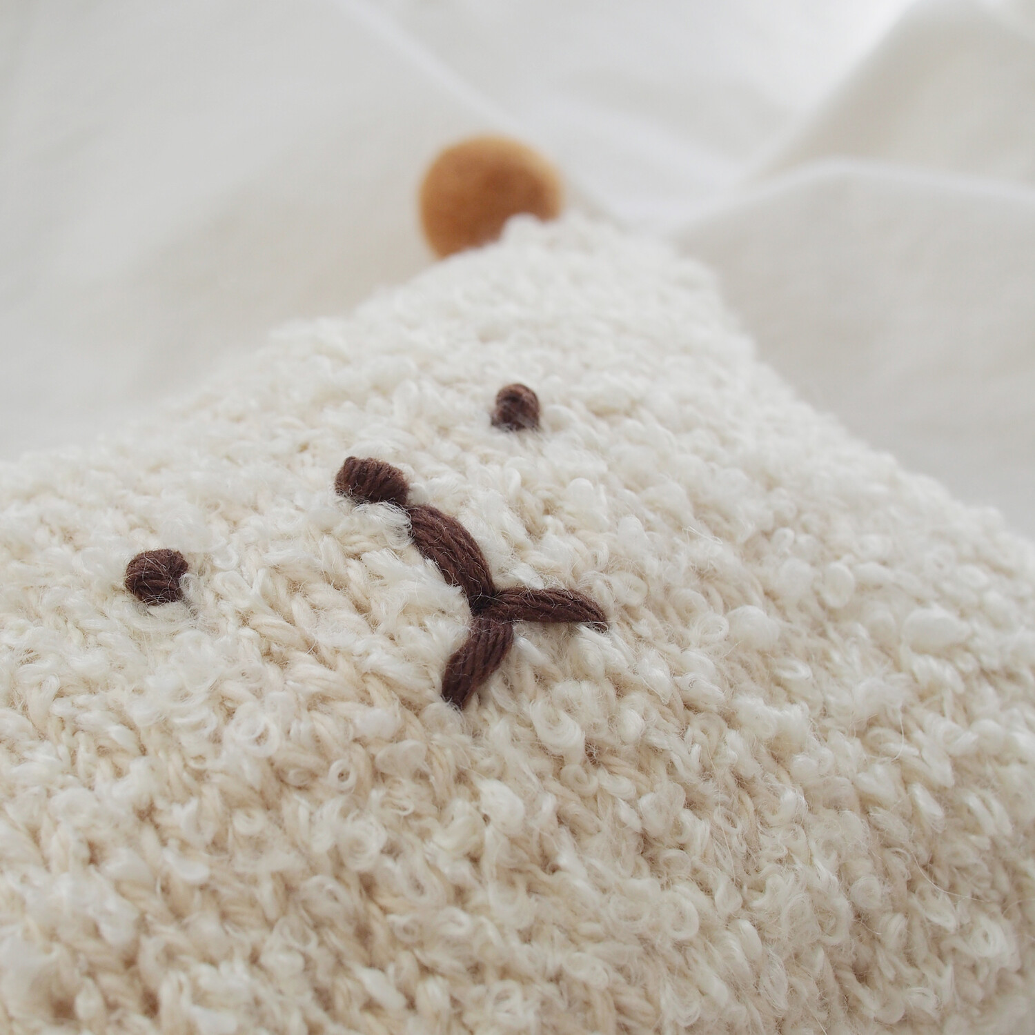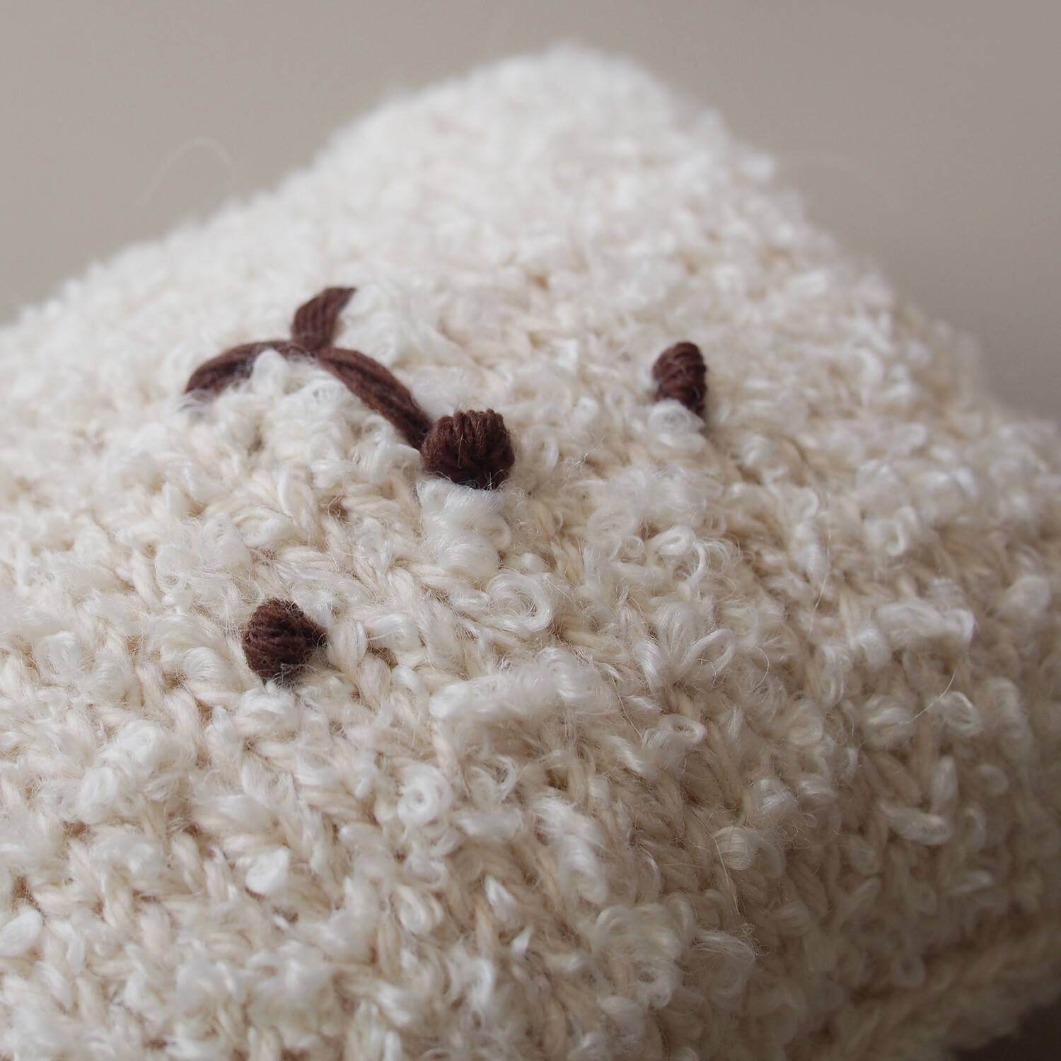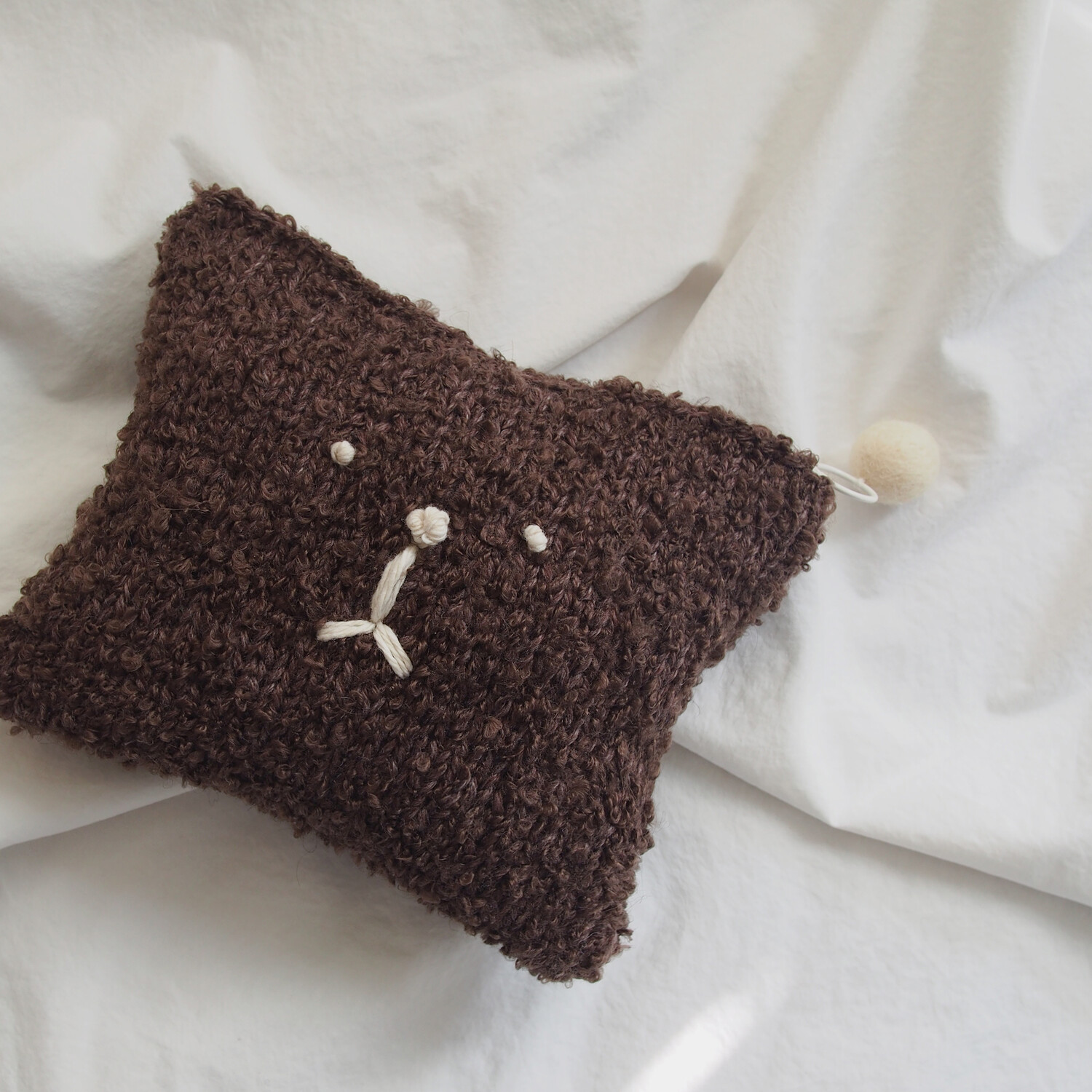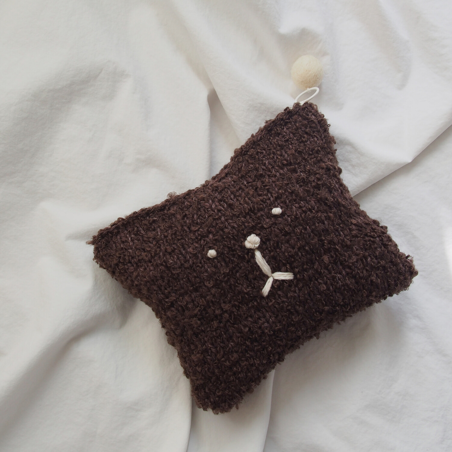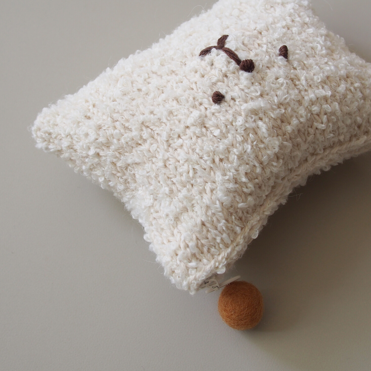 너무너무 귀여운 뽀글뽀글 곰돌이 파우치예요. 링구사를 합사해서 귀여운 느낌으로 완성했습니다. 손에 닿는 감촉도 너무 귀엽고요. 어쩐지 뚱해보이기까지 하는 귀여운 표정도 귀엽습니다. 멜로닛츠의 파우치를 많이 떠보신 분들은 전혀 어려움이 없을 파우치고요. 그저 원통뜨기로 뜨기만 하면 되는 쉬운 디자인입니다. 물론 링구사의 특성때문에 코를 조금 신경써서 뜨셔야 하긴 하지만 단순한 패턴이라서 어려움 없이 뜨실 수 있을거예요. 스티치로 표정을 완성하면 끝! 지퍼와 펠트볼로 완성해주세요~