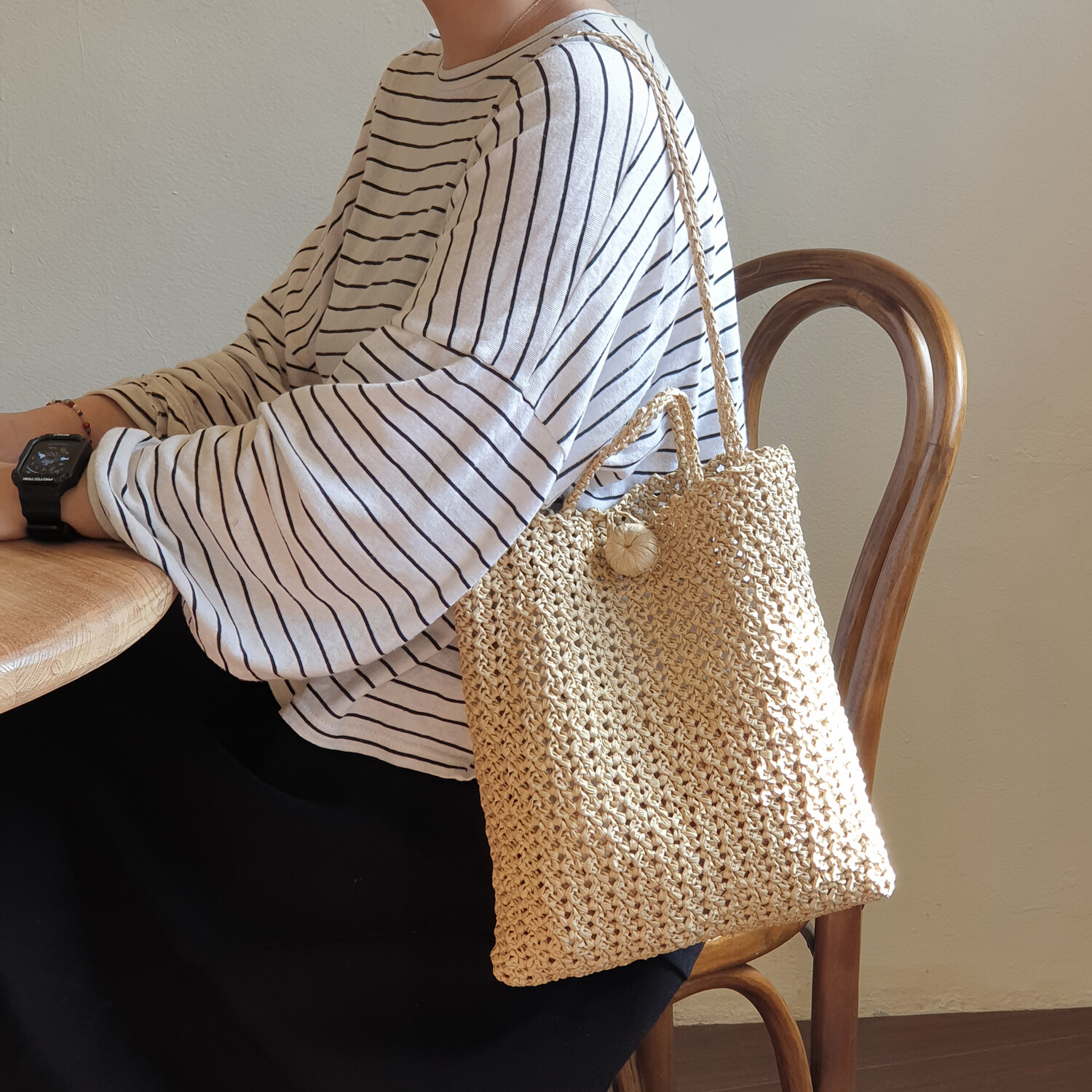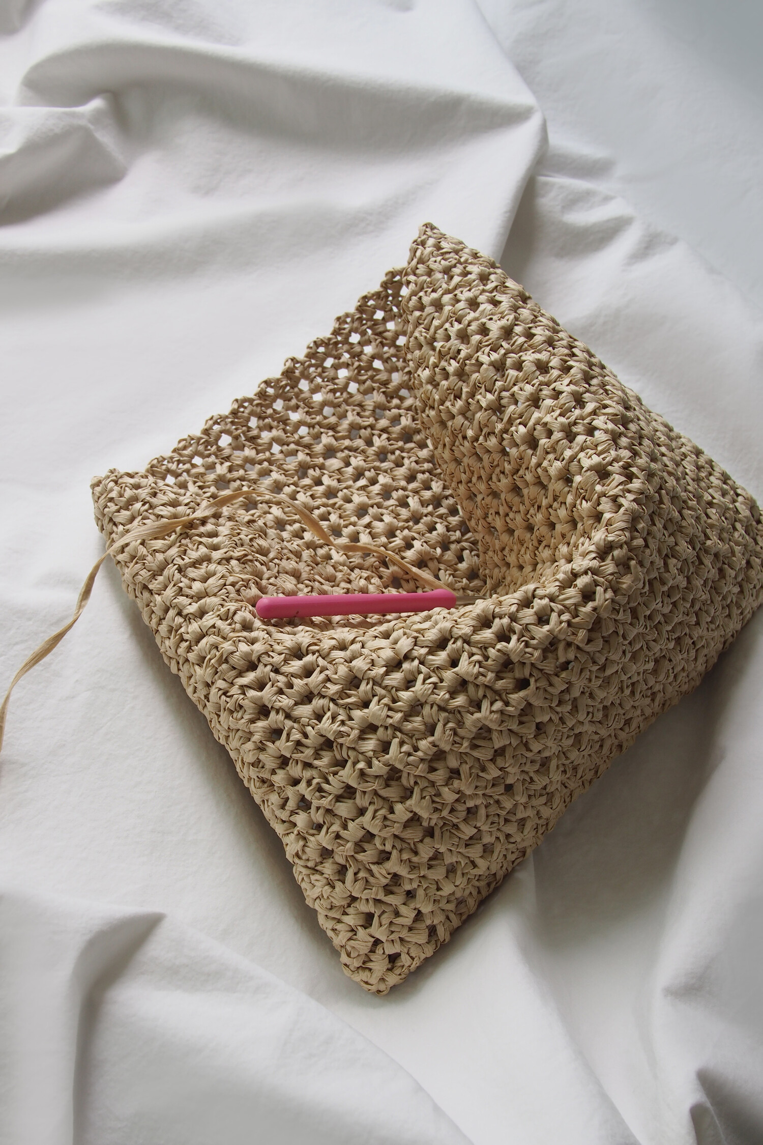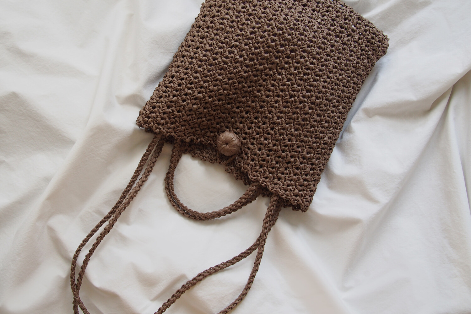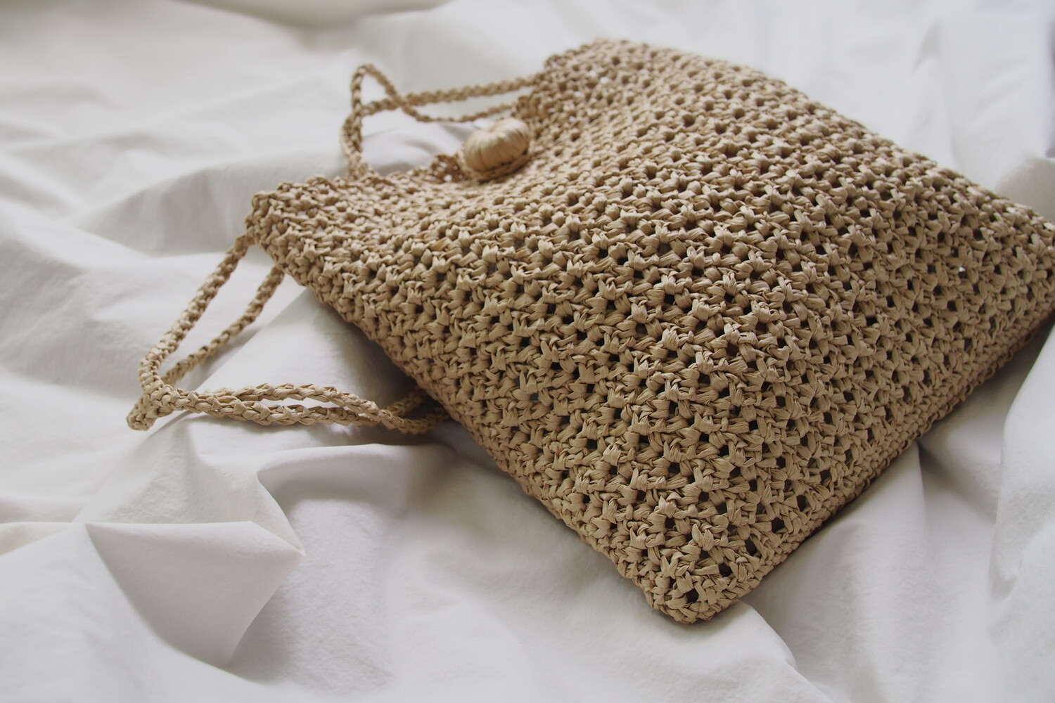 페미닌한 느낌이 물씬 나는 미니쉘 패턴의 가방입니다. 조직감이 너무 촘촘하지 않은데다 펄프얀 소재라서 서걱서걱 시원하고 가벼운 느낌의 가방입니다. 편안하게 들 수 있는 너무 작지도 너무 크지도 않은 가방입니다. 어렵지 않아서 부담없이 뜨실 수 있어요. 토트끈과 숄더끈을 모두 달아서 좀 더 편안하게 사용하실 수 있어요. 취향에 따라 숄더끈 또는 토트끈 한가지만 달아도 괜찮아요. 어떤 스타일에도 잘 어울리는 가방, 꼭 떠보세요.