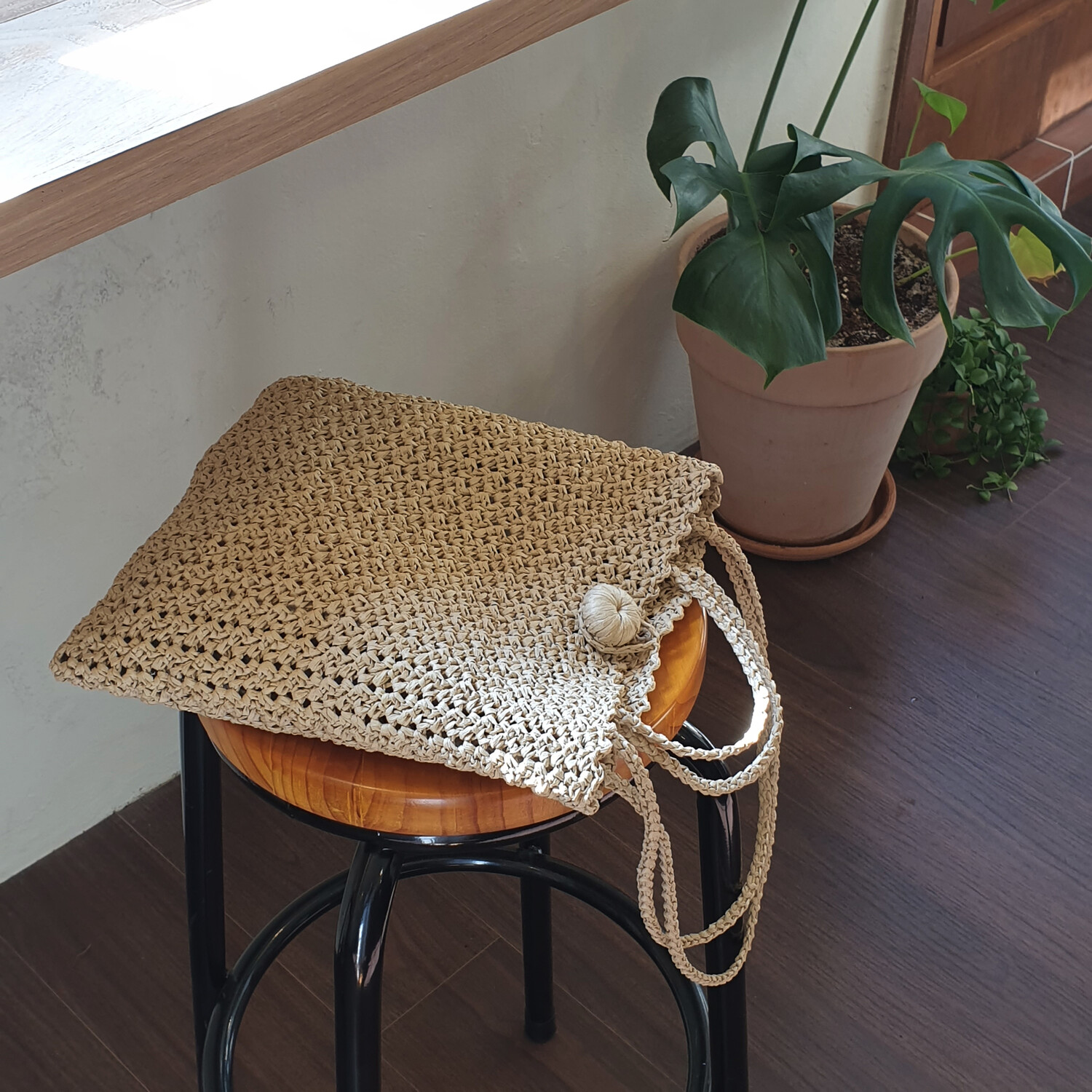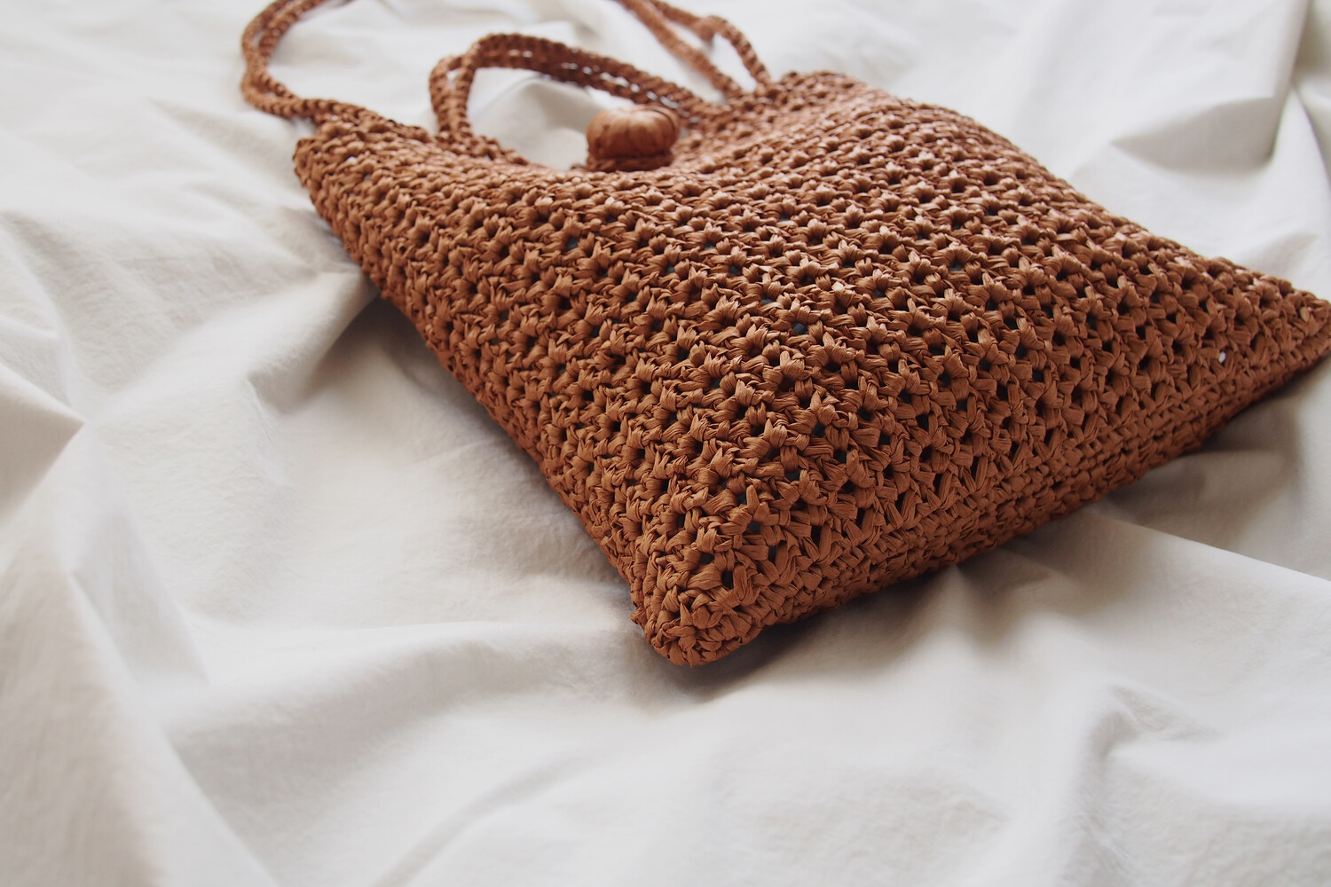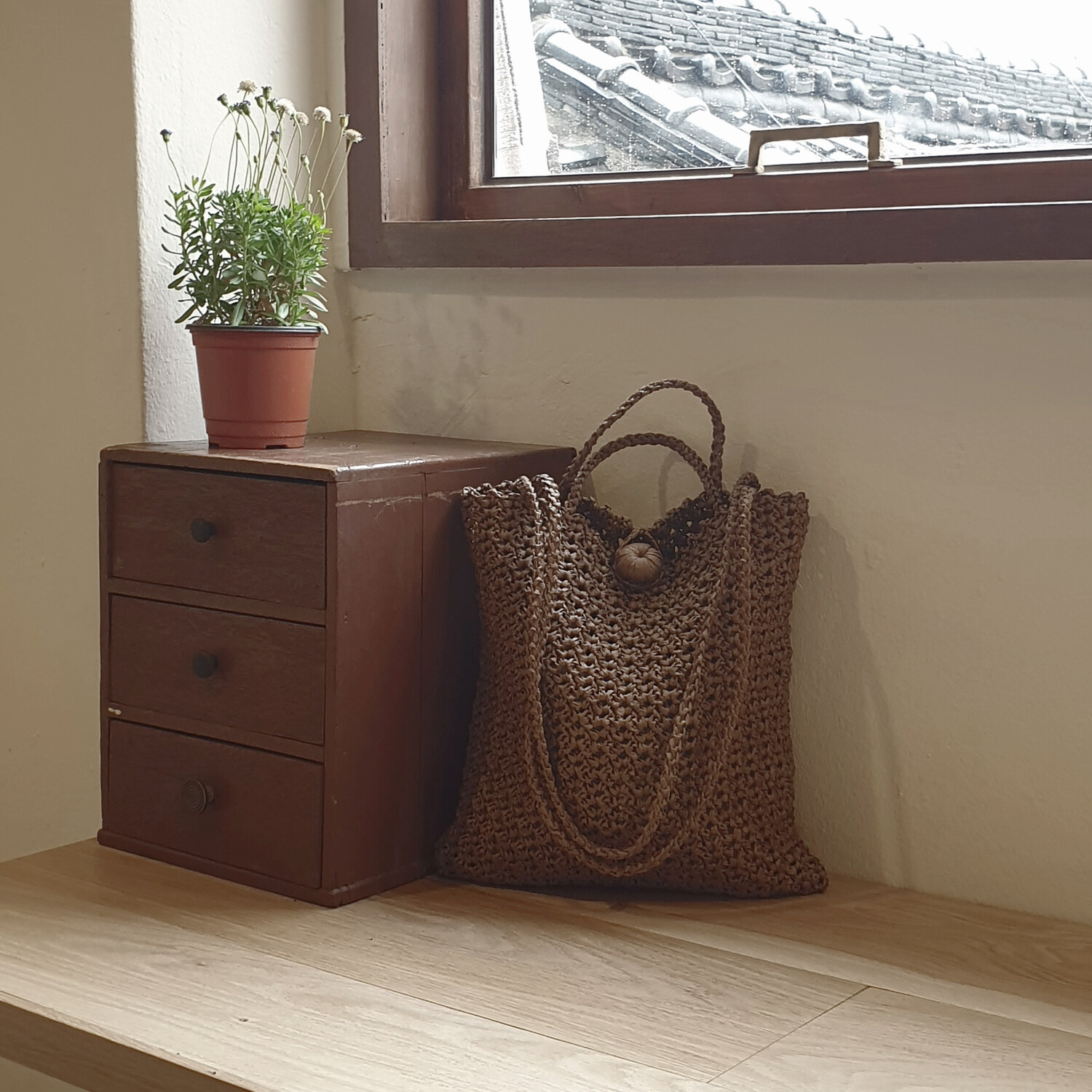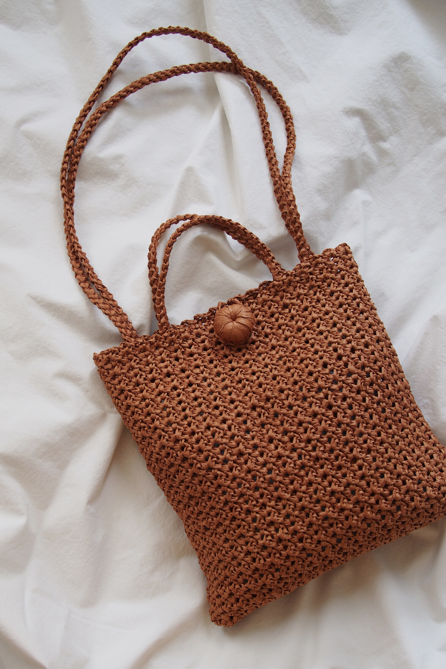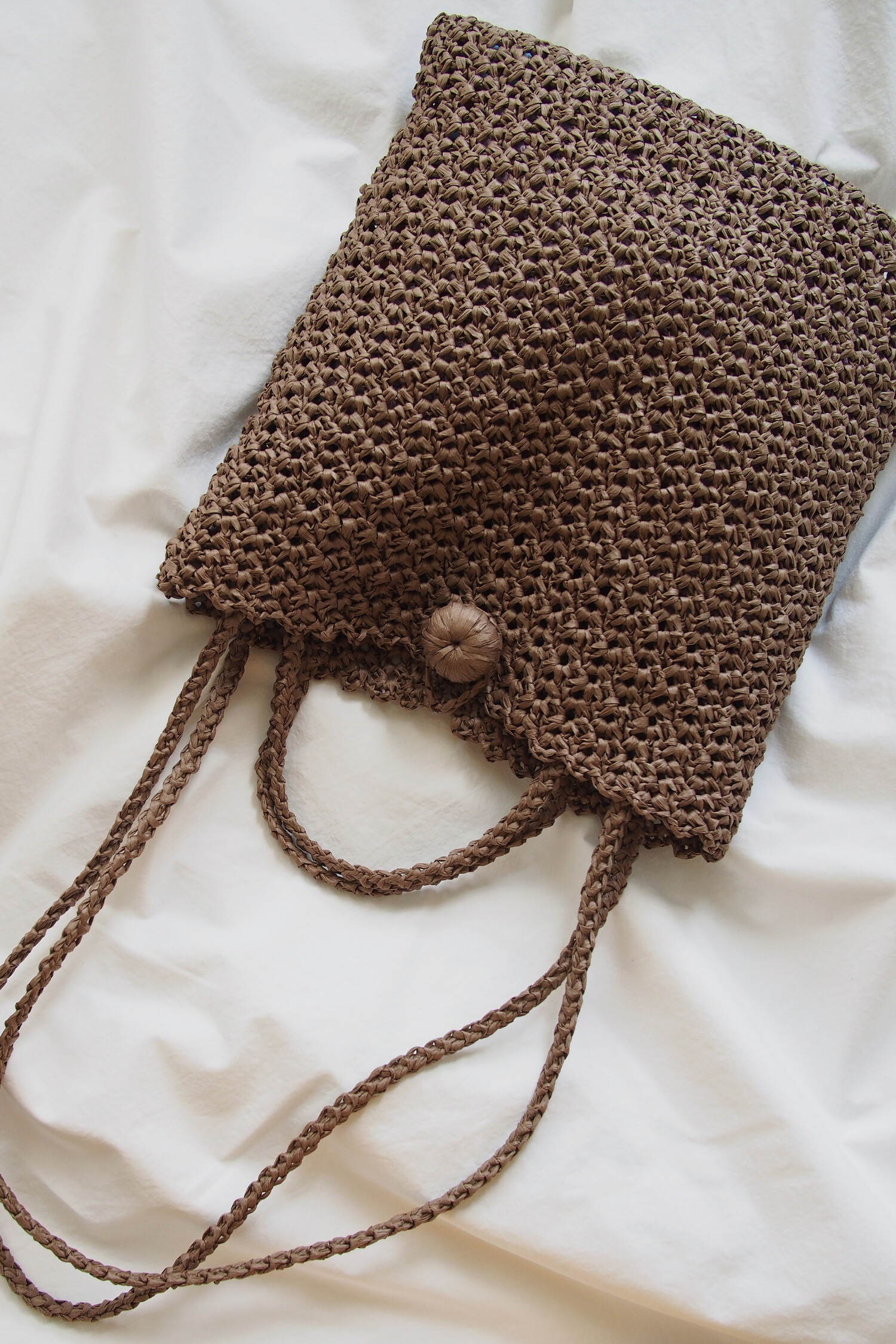 페미닌한 느낌이 물씬 나는 미니쉘 패턴의 가방입니다. 조직감이 너무 촘촘하지 않은데다 펄프얀 소재라서 서걱서걱 시원하고 가벼운 느낌의 가방입니다. 편안하게 들 수 있는 너무 작지도 너무 크지도 않은 가방입니다. 어렵지 않아서 부담없이 뜨실 수 있어요. 토트끈과 숄더끈을 모두 달아서 좀 더 편안하게 사용하실 수 있어요. 취향에 따라 숄더끈 또는 토트끈 한가지만 달아도 괜찮아요. 어떤 스타일에도 잘 어울리는 가방, 꼭 떠보세요.