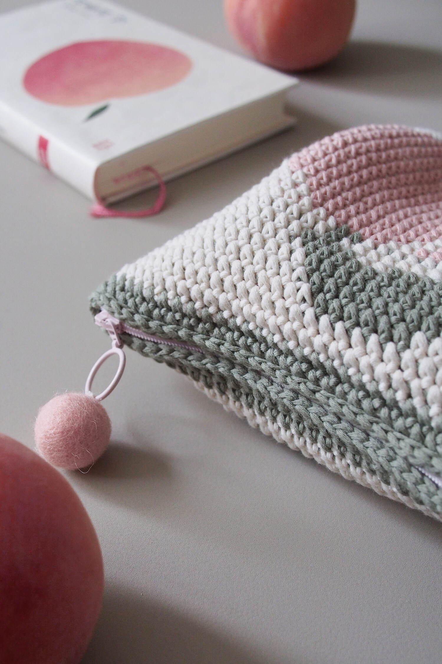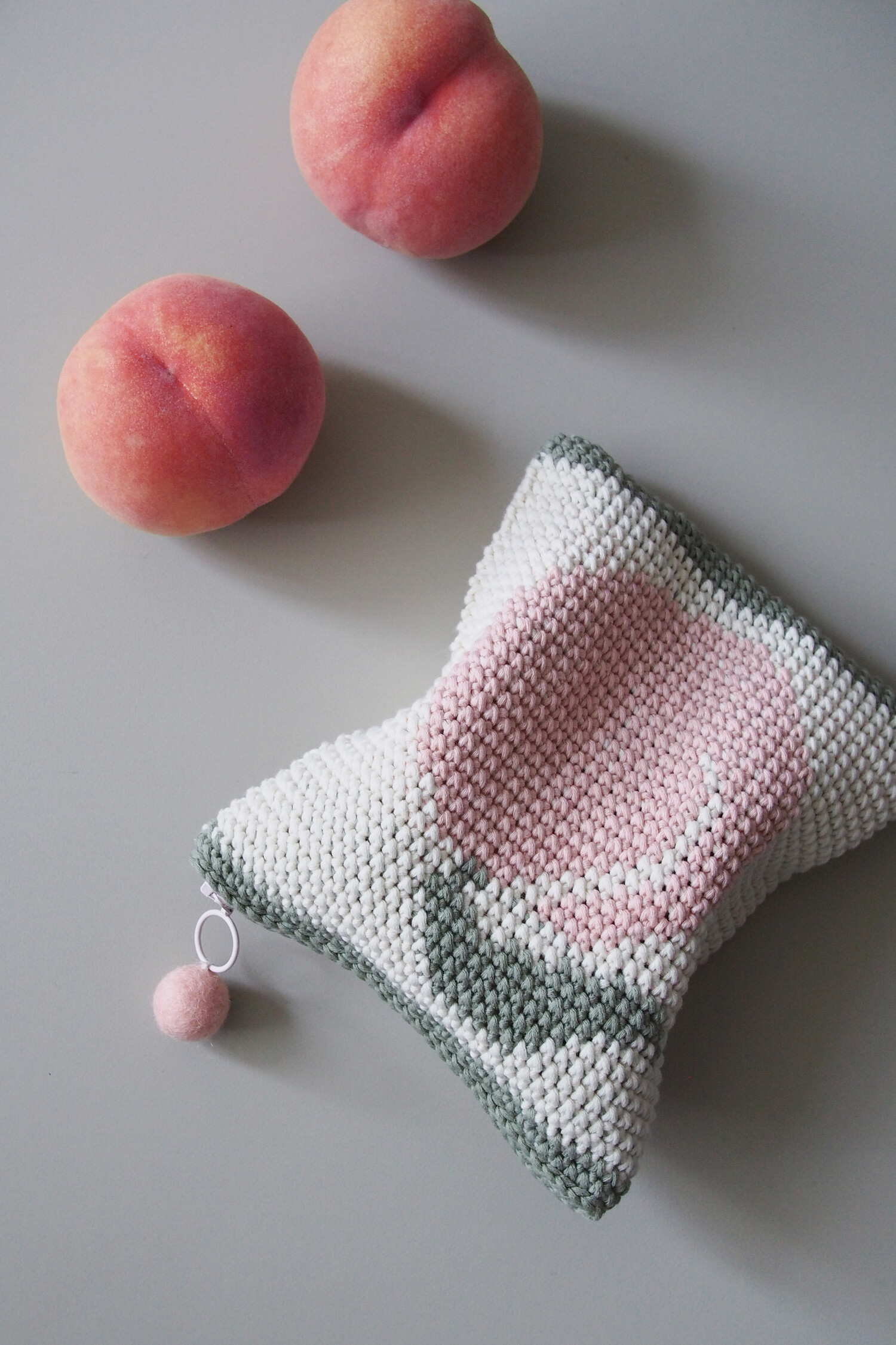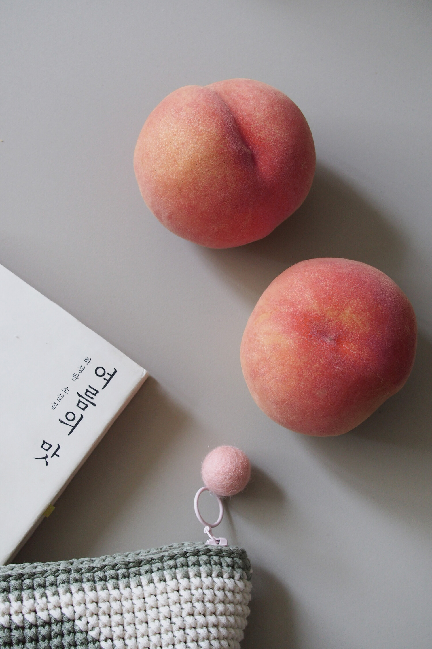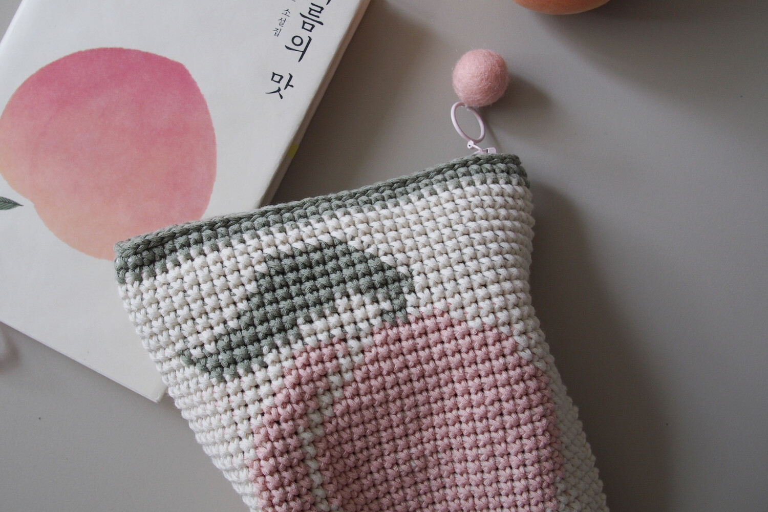 몇 해 전에 복숭아 파우치를 뜨고서 진행을 하지 않았는데요, 조금 수정해서 큰 복숭아 한 알이 먹음직스러운 파우치로 완성되었습니다. 과즙이 흐르고 달콤한 향기가 날 것 같은 복숭아 파우치예요. 배색뜨기 키트는 항상 이랑뜨기로 뜨도록 작업했었는데요. 이번엔 변형 짧은뜨기로 뜨는 도안입니다. 한 코 한 코가 큐브형태로 도드라져서 기존의 짧은뜨기와는 완성작의 느낌이 완전히 다르더라고요. 처음엔 어색할 수 있지만 금방 익숙하게 뜨실 수 있으니 영상의 도움을 받아 예쁜 복숭아 파우치를 함께 완성해봐요.