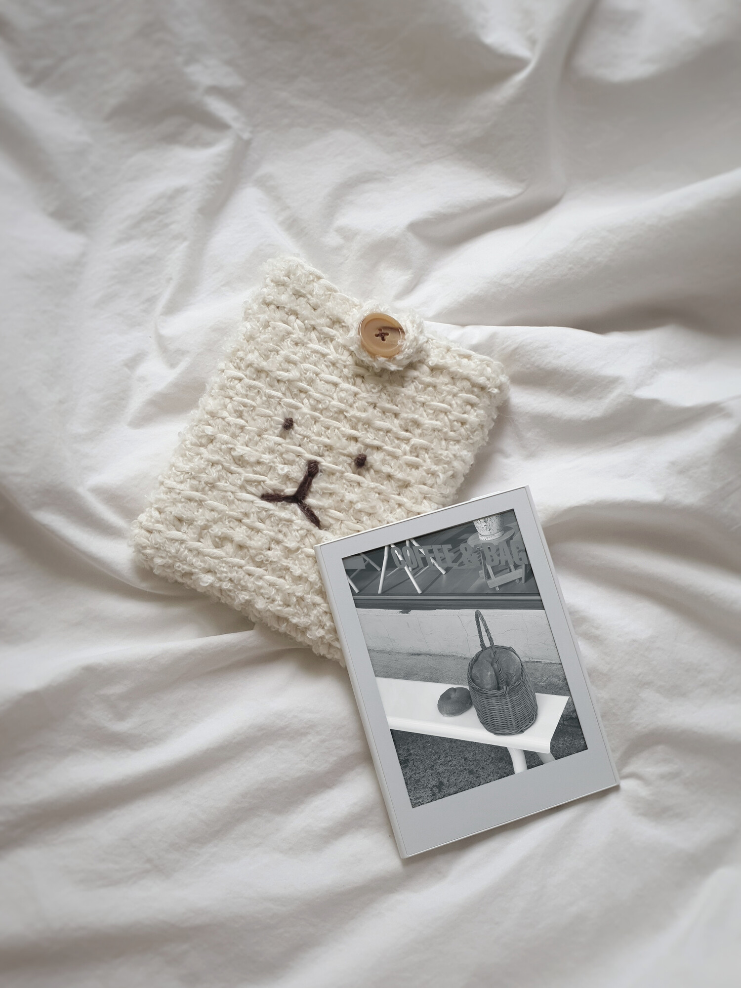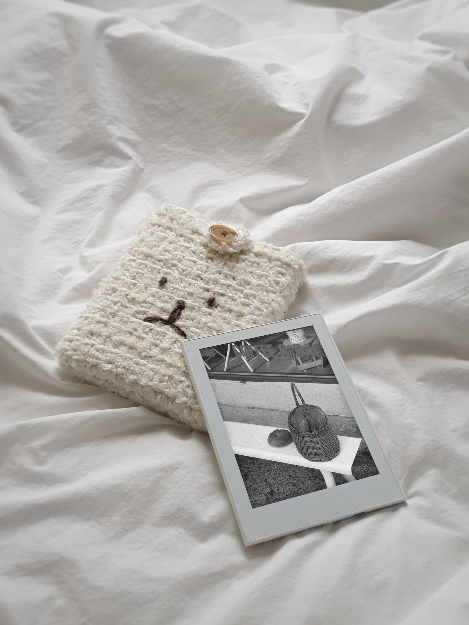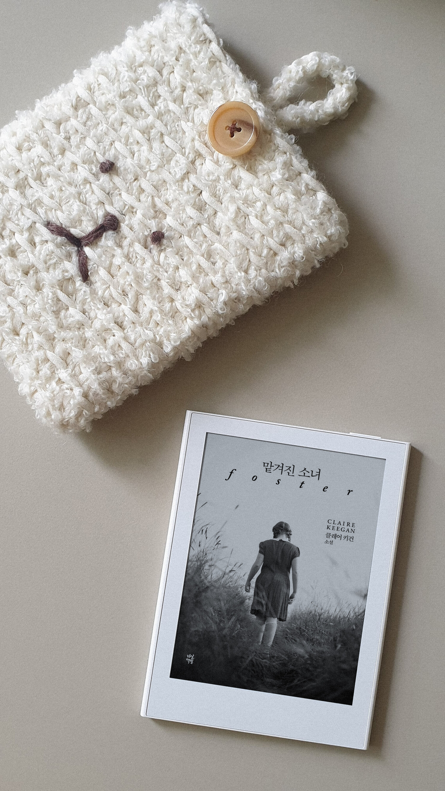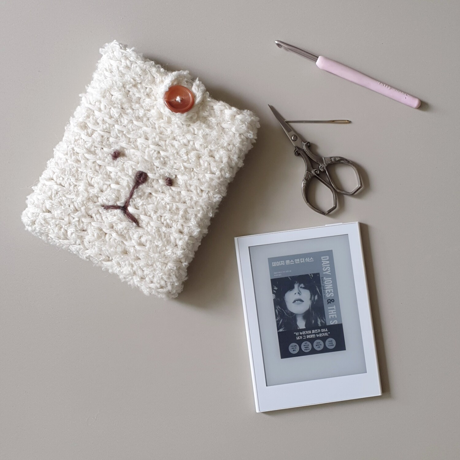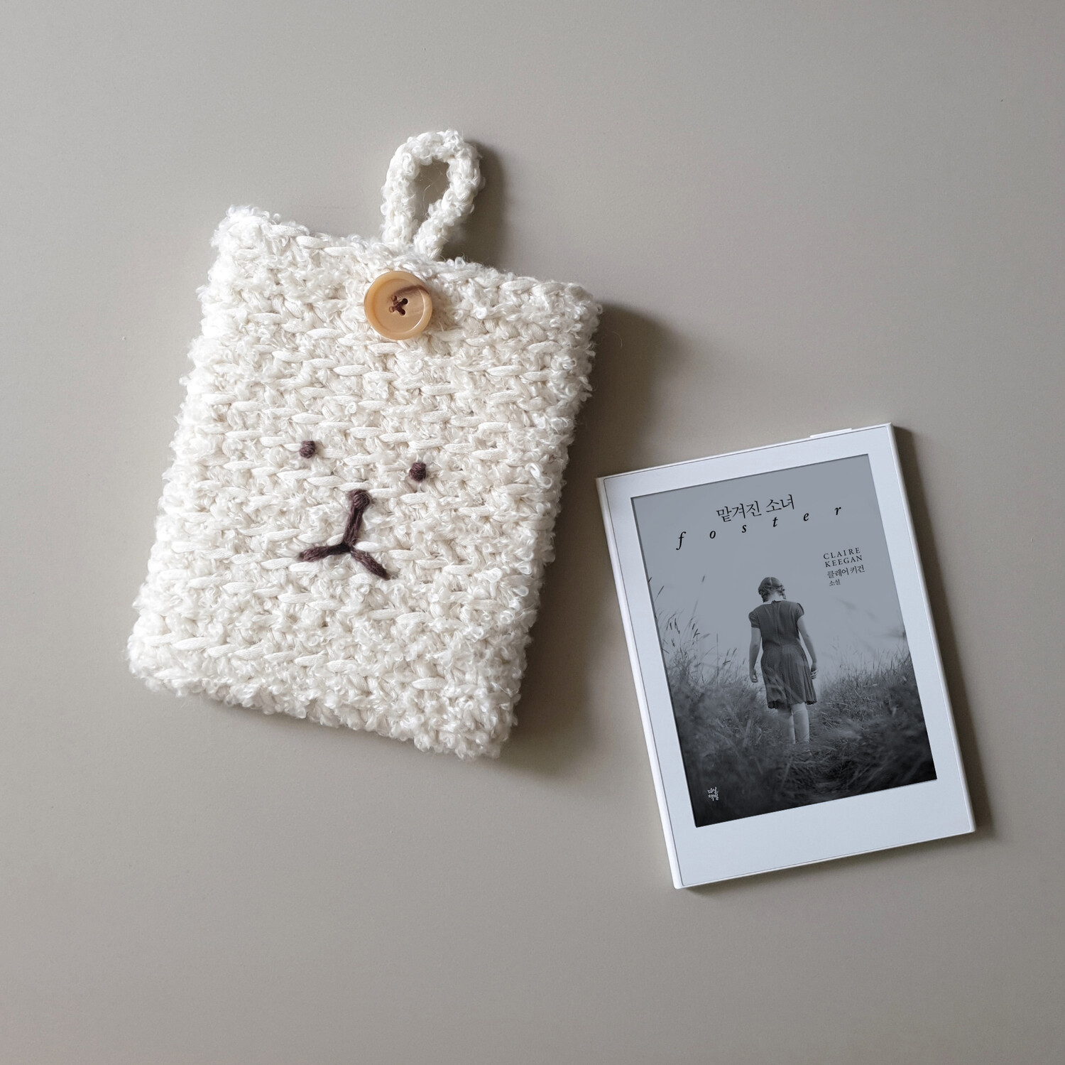 손뜨개로 제작한 e이북리더기 파우치입니다.
