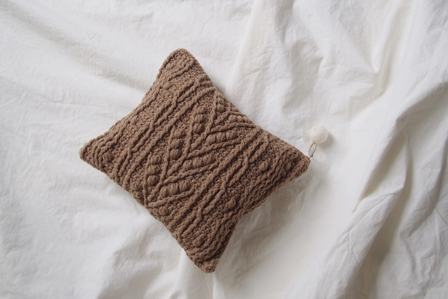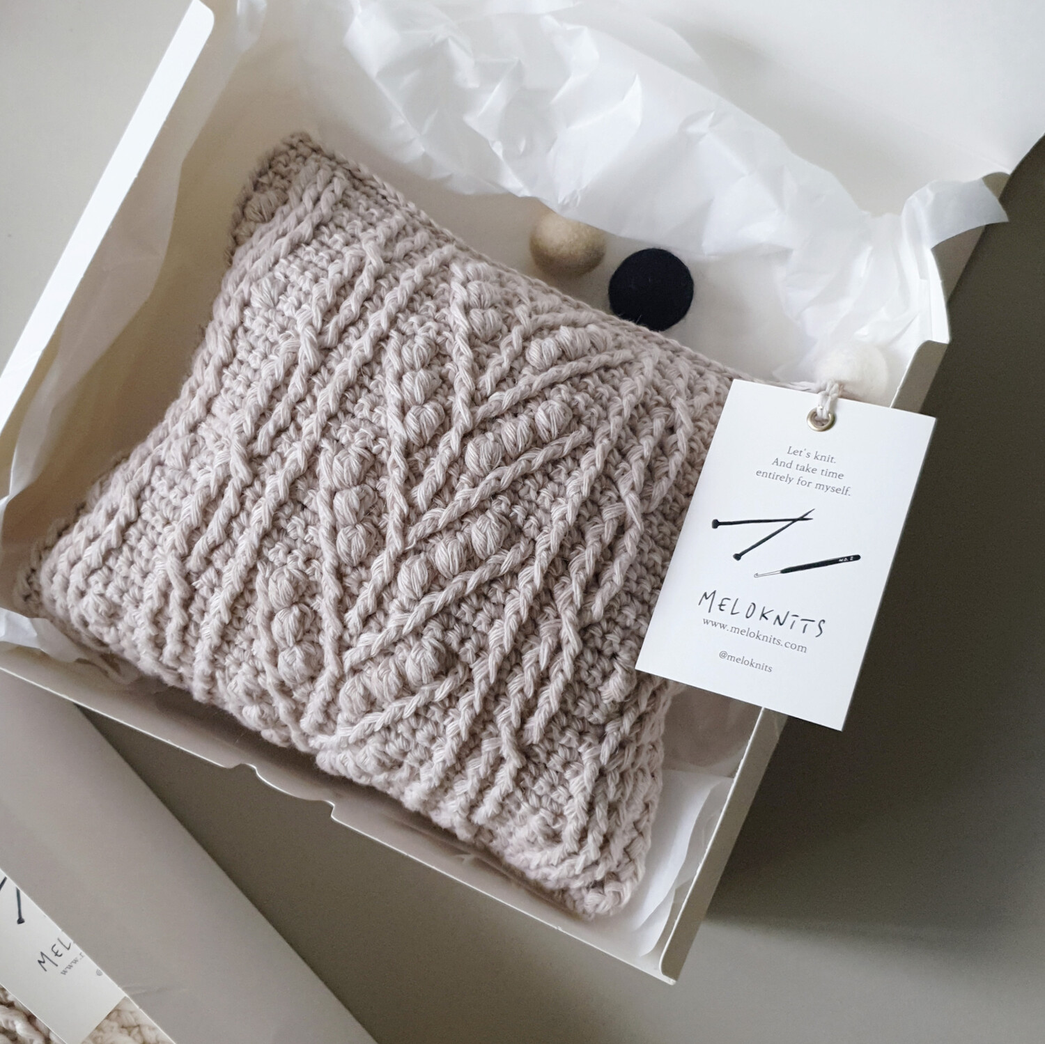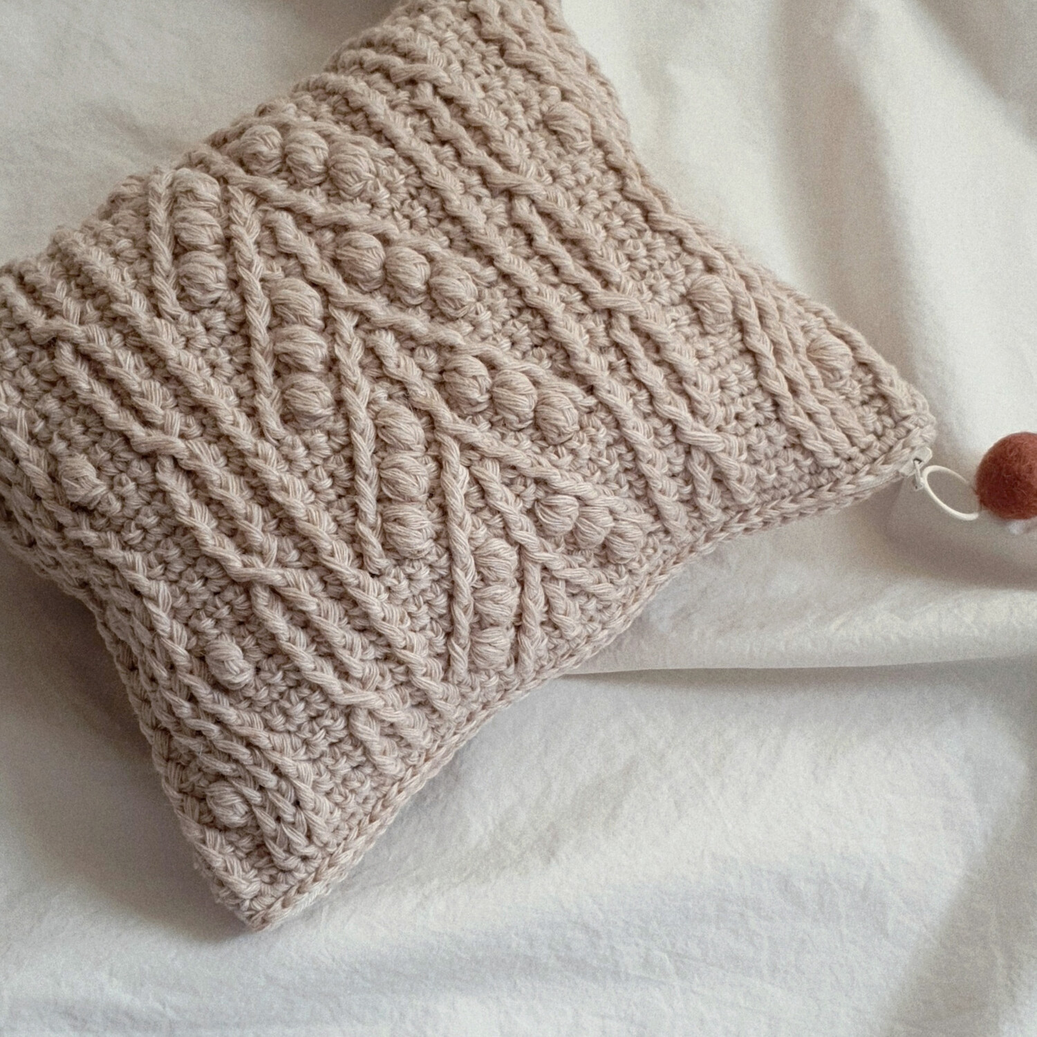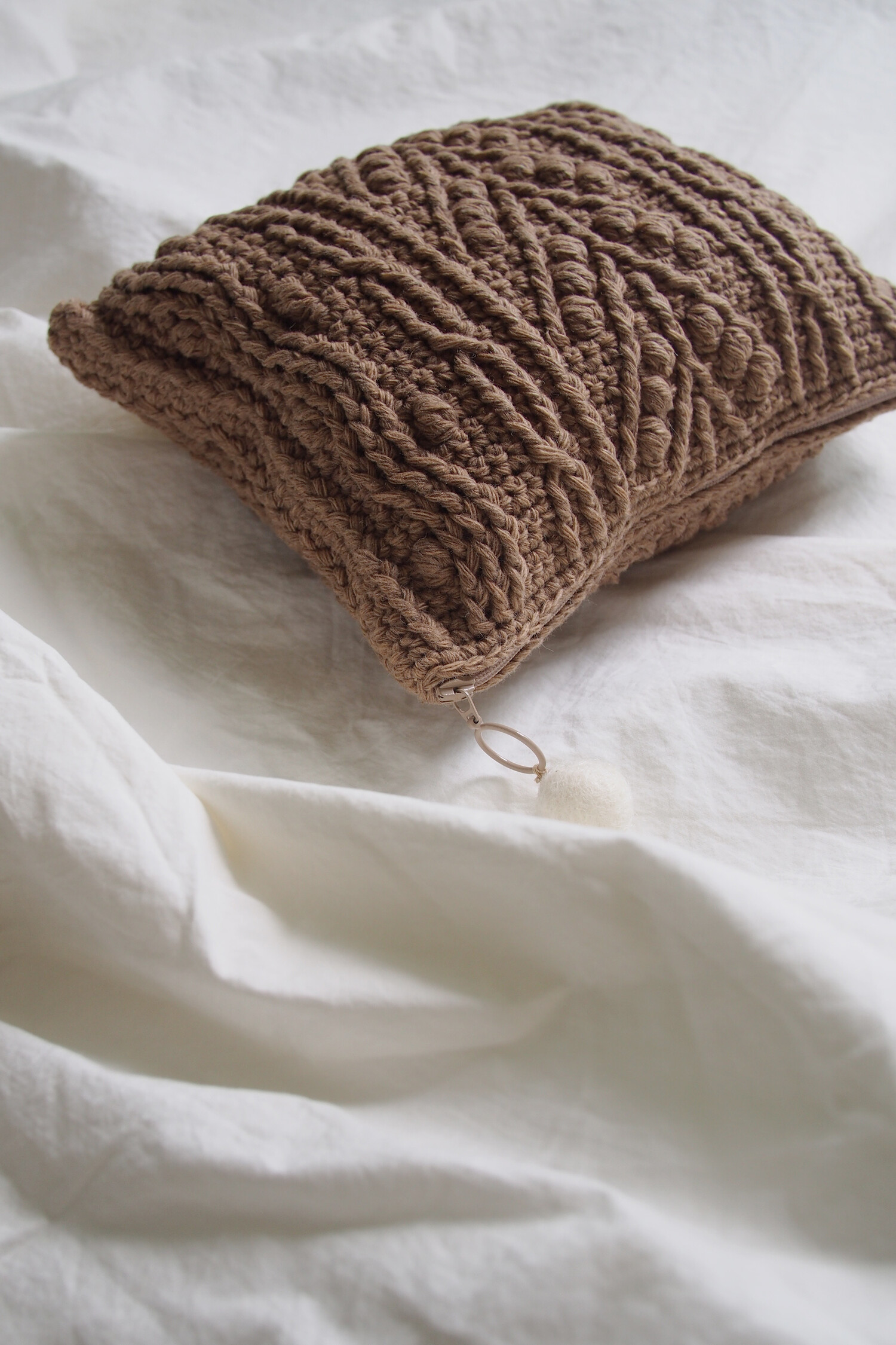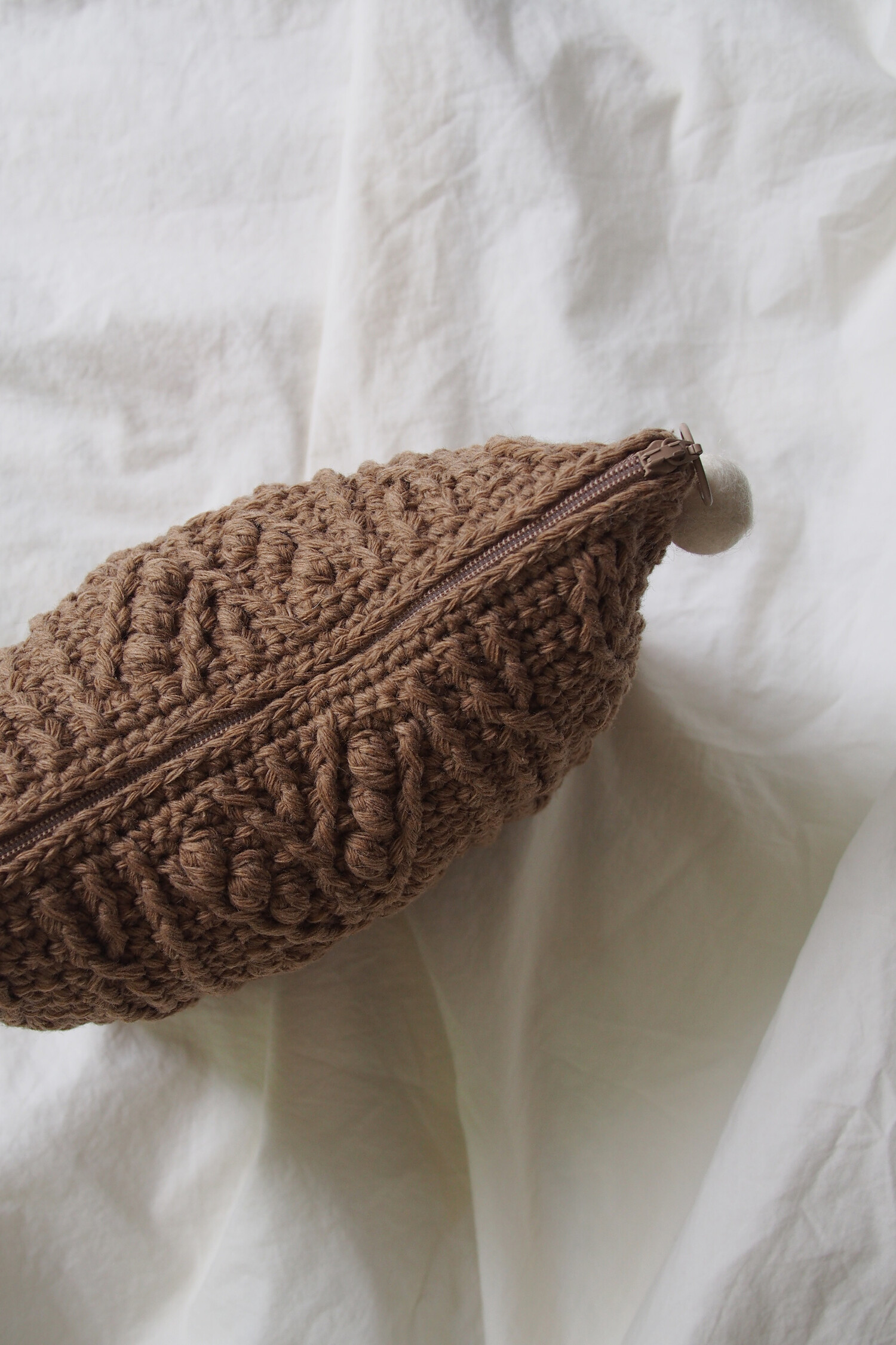 대바늘 패턴에서 많이 볼 수 있는 아란 무늬를 코바늘로 뜨는 파우치입니다. 입체적인 편물을 뜨는 재미가 있습니다. 도안만 보면 복잡해보이지만 떠보면 전혀 어렵지 않고 재밌어서 많이 많이 추천하고 싶은 D.I.Y 키트예요. 넉넉하고 깊은 파우치라 수납력이 좋고요. 아란 패턴이 이 계절에 참 따스해보이네요. 컬러는 두 가지고요. 옵션에서 구성 선택 하실 수 있습니다. 그레이 컬러는 멜란지 그레이구요, 크림 컬러는 아주 살짝 멜란지 합니다.