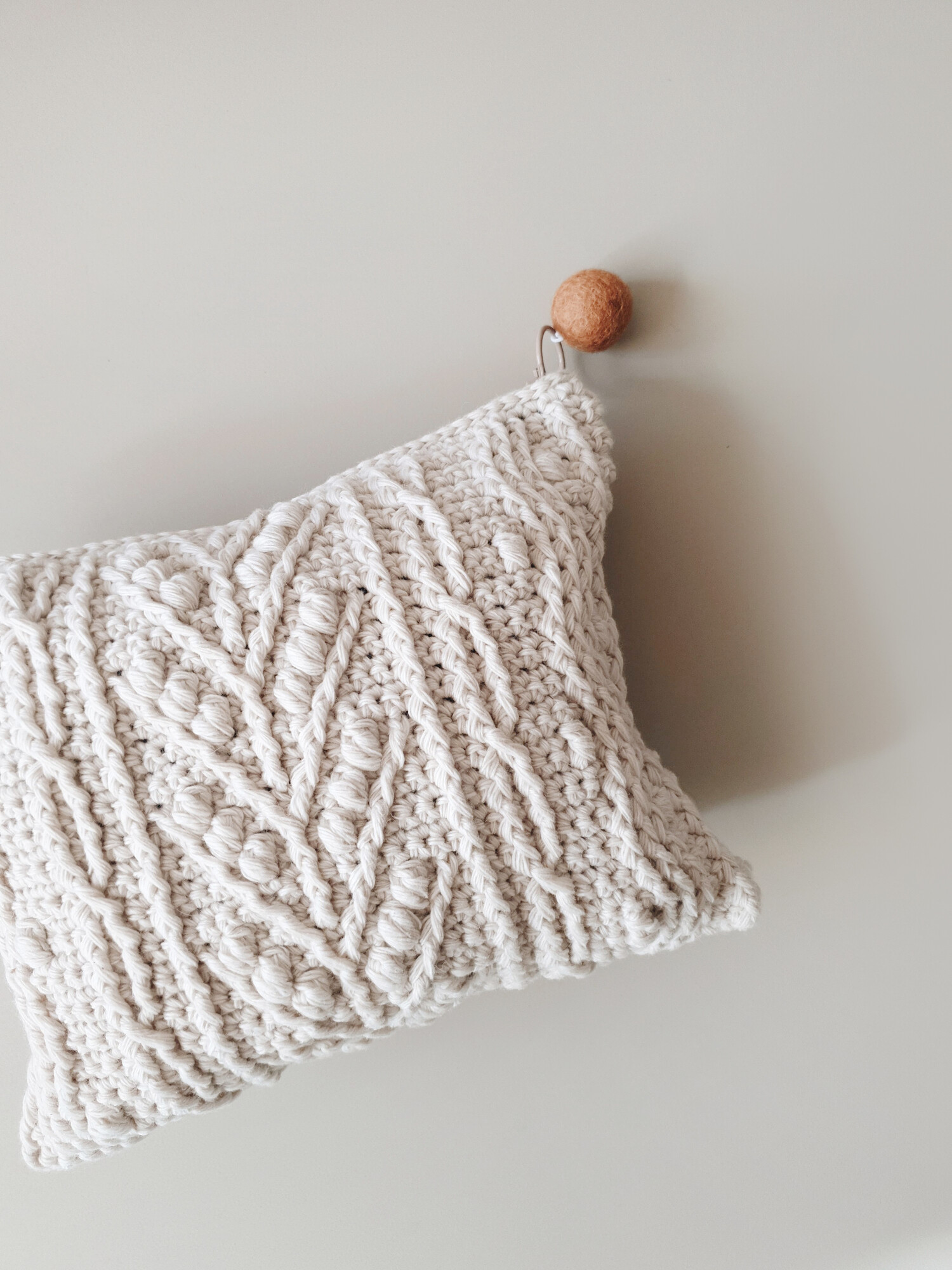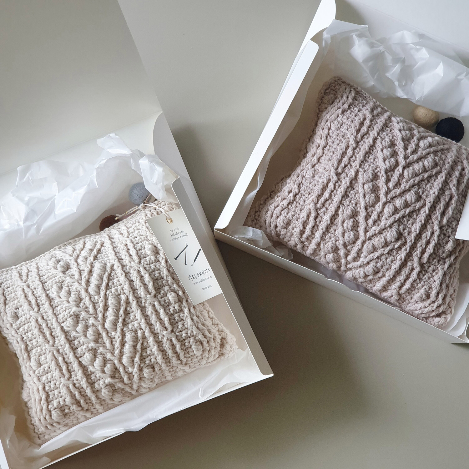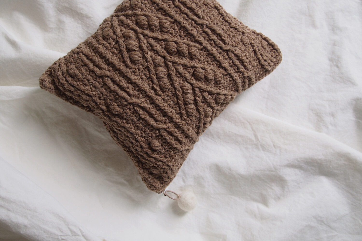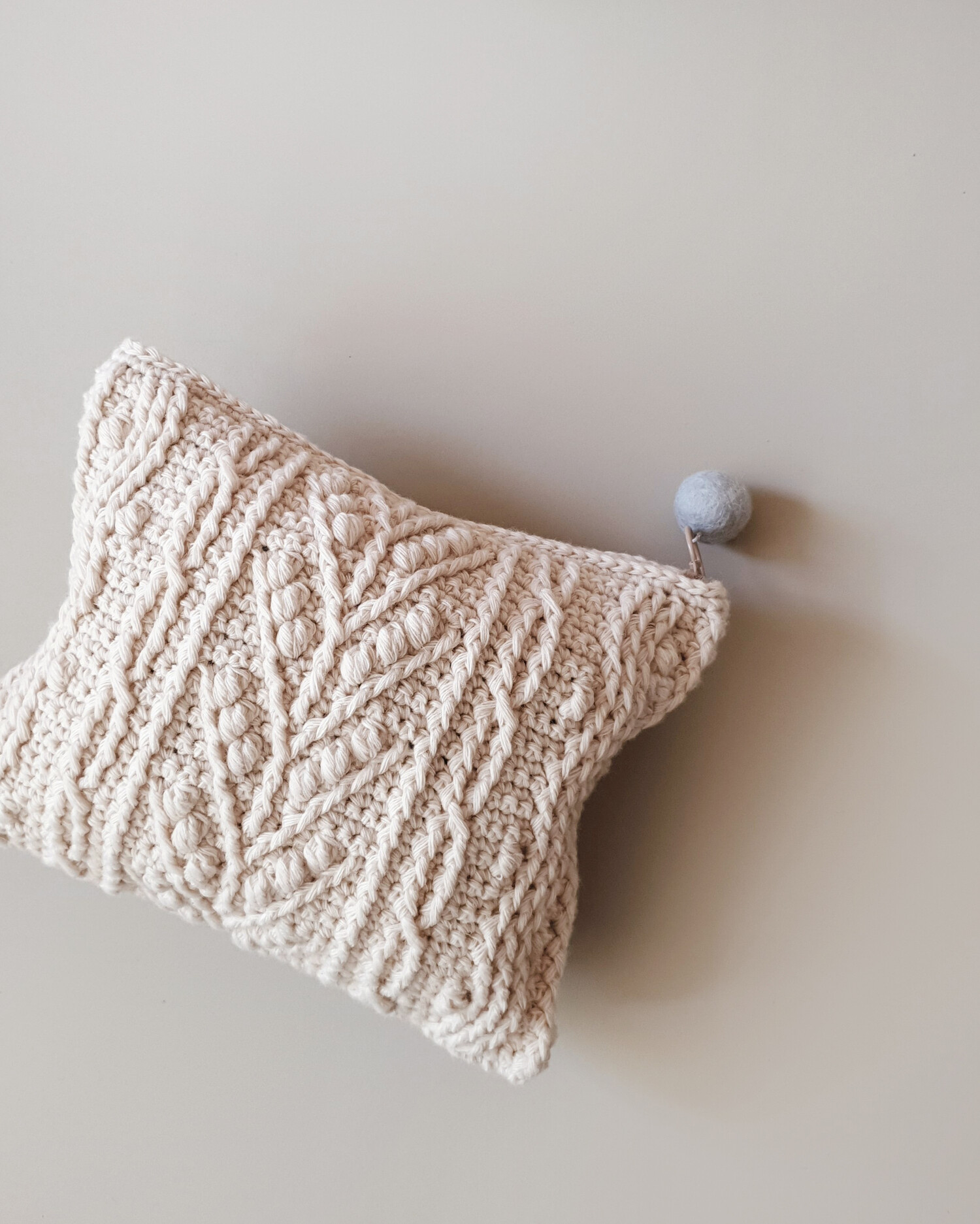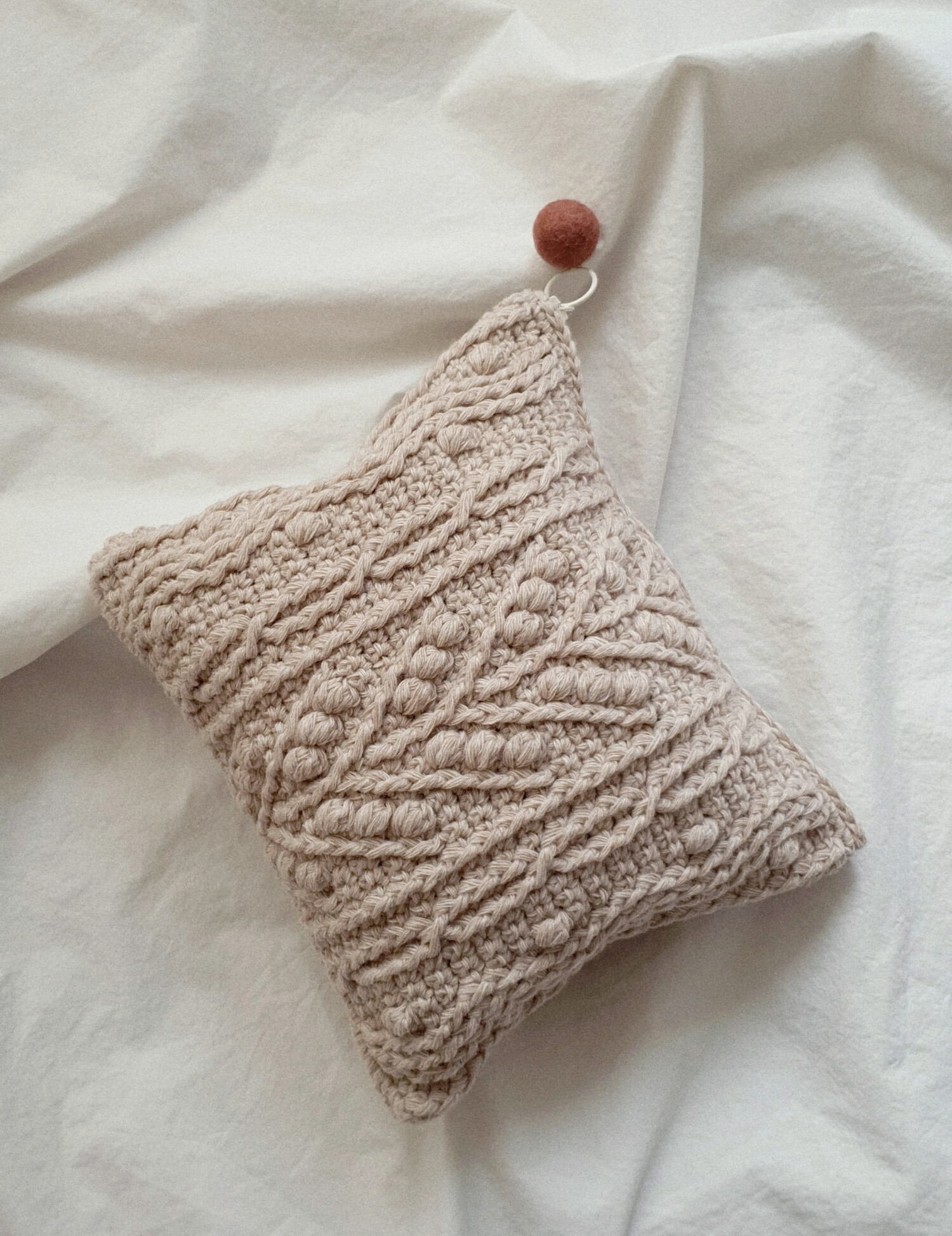 대바늘 패턴에서 많이 볼 수 있는 아란 무늬를 코바늘로 뜨는 파우치입니다. 입체적인 편물을 뜨는 재미가 있습니다. 도안만 보면 복잡해보이지만 떠보면 전혀 어렵지 않고 재밌어서 많이 많이 추천하고 싶은 D.I.Y 키트예요. 넉넉하고 깊은 파우치라 수납력이 좋고요. 아란 패턴이 이 계절에 참 따스해보이네요. 컬러는 두 가지고요. 옵션에서 구성 선택 하실 수 있습니다. 그레이 컬러는 멜란지 그레이구요, 크림 컬러는 아주 살짝 멜란지 합니다.