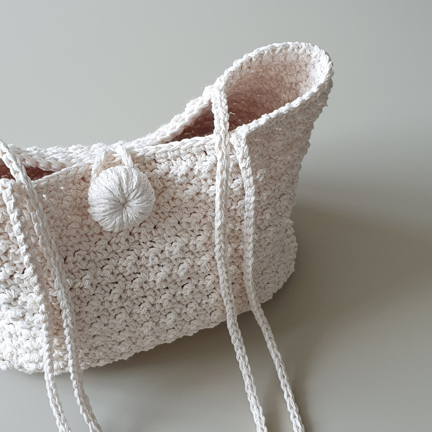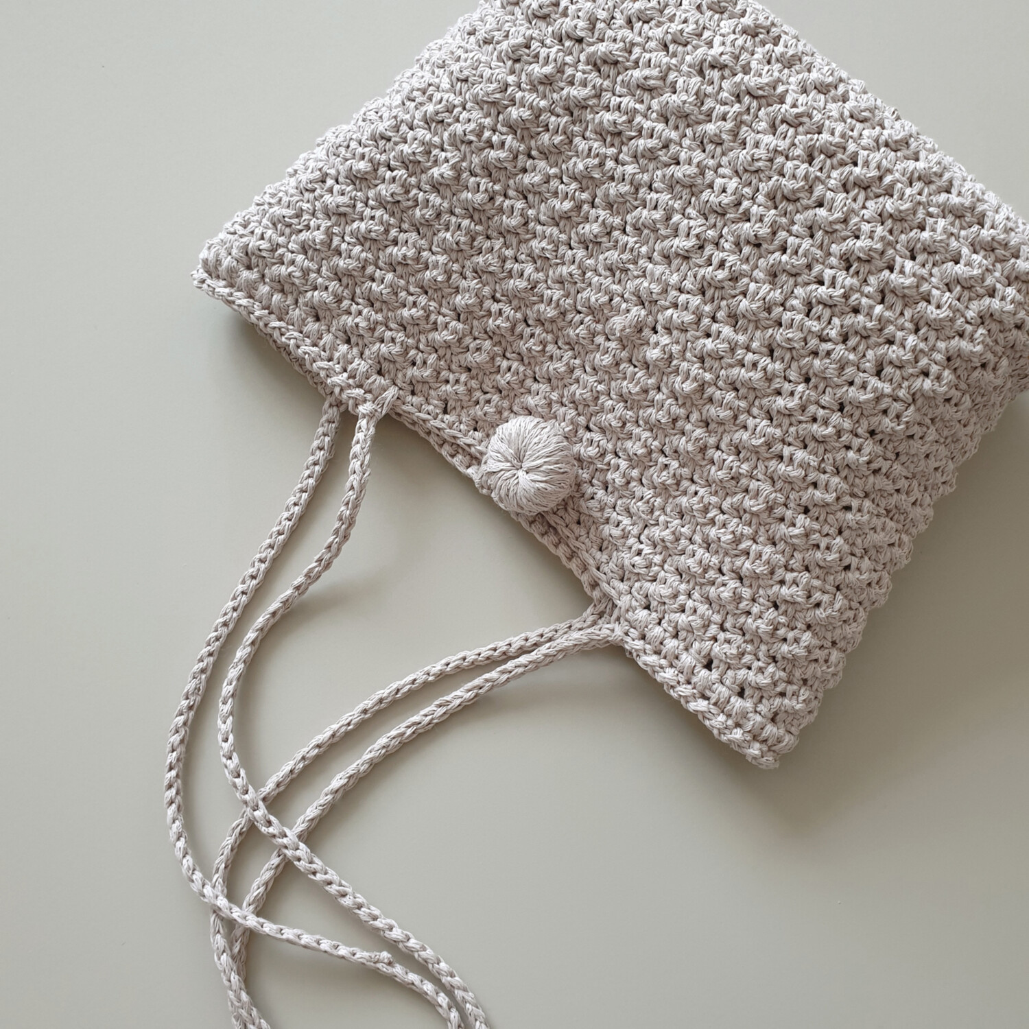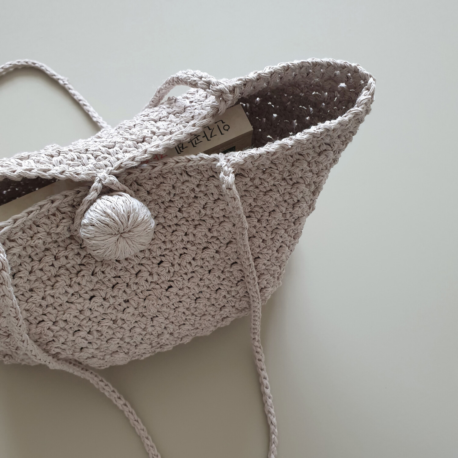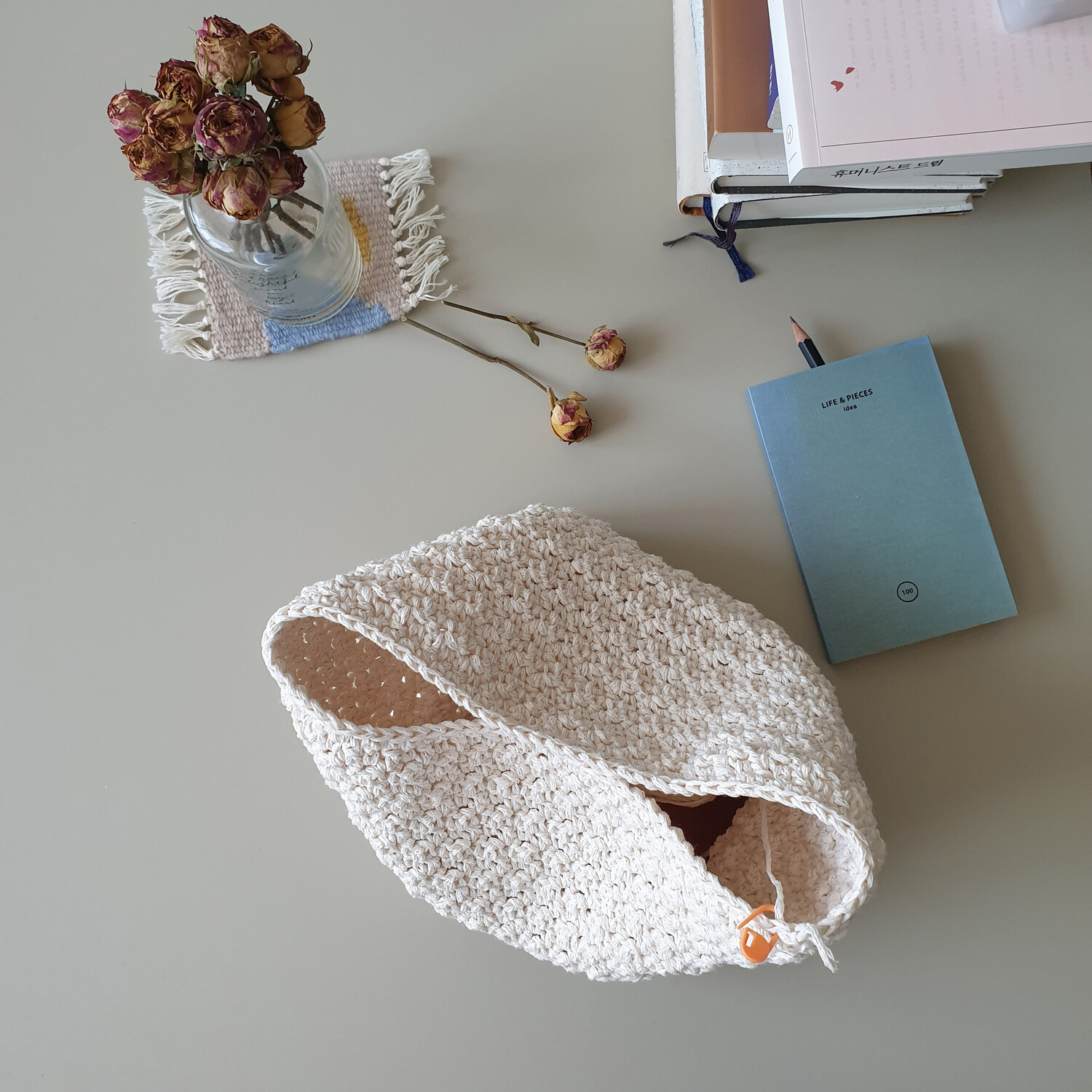 안녕하세요, 멜로닛츠입니다. 올해도 여름가방 안하면 섭섭해서, 제가 쓰려고 뜬 가방입니다. 가방 바닥을 이용해서 깔끔하고 빠르게 완성할 수 있는 가방이구요. 린넨과 코튼 소재의 실을 이용해서 너무 뻣뻣하지도 너무 찰랑하지도 않은 소재이면서 여름느낌이 살아나는 가방입니다. 어렵지 않은 기법으로 독특한 느낌을 주는 조직이에요. 뜨개단추로 만든 여밈 디테일도 예뻐요. 저는 5월부터 들고 다니고 있는데 여기저기 들기 참 좋은 가방이에요. 저는 짧은 숄더백이 불편해서 여유있게 끈을 만들어 가방이 갈비뼈에서 허리 쯤에 오도록 했거든요. 숄더끈 길이는 자신의 체형에 맞게 조절하셔서 뜨시면 됩니다.