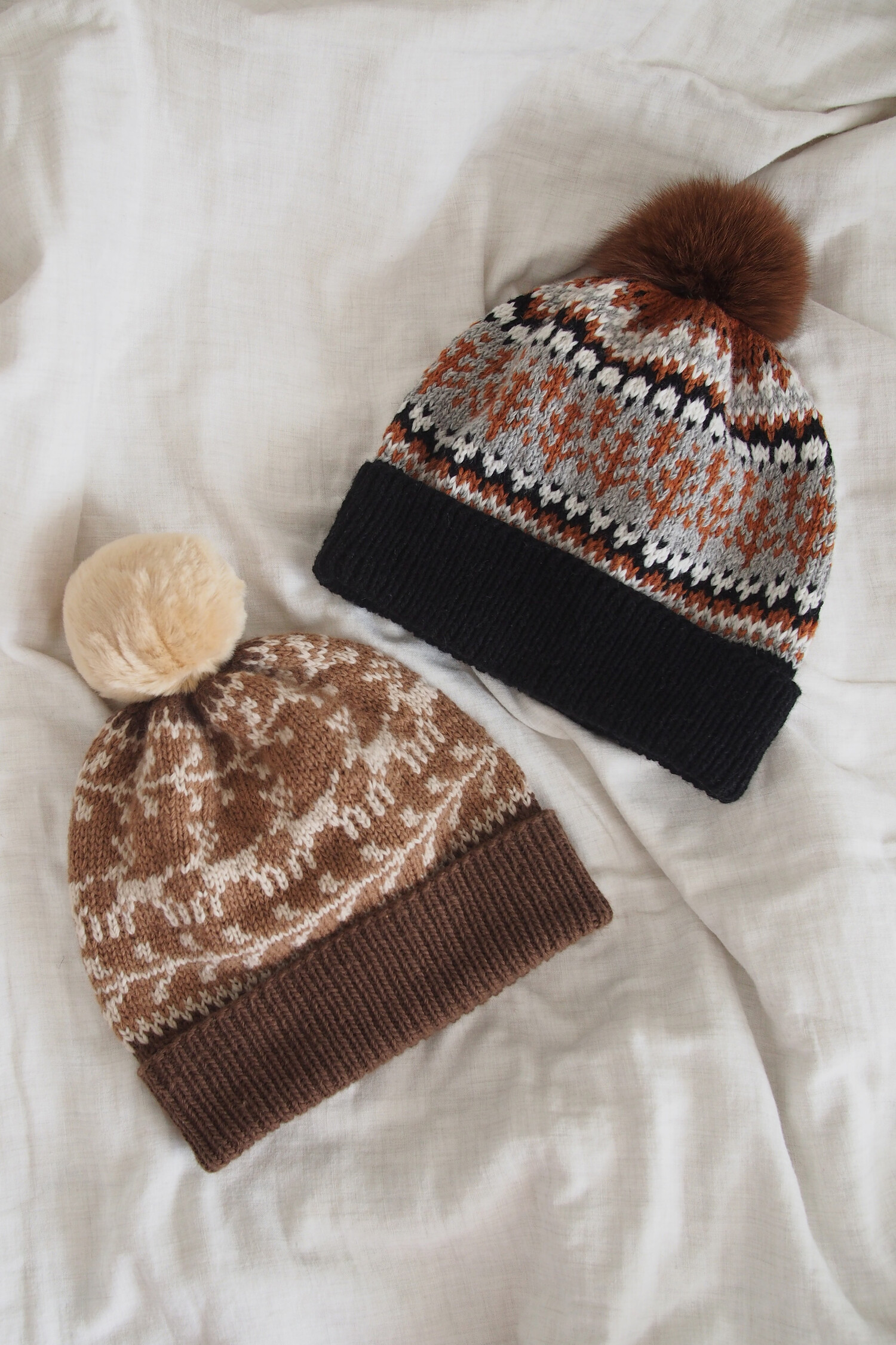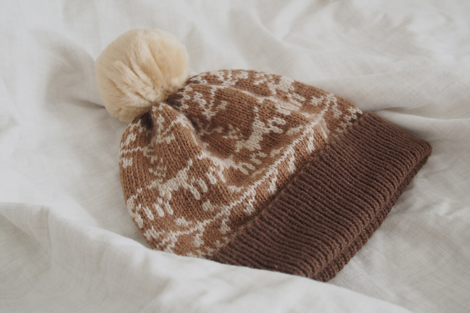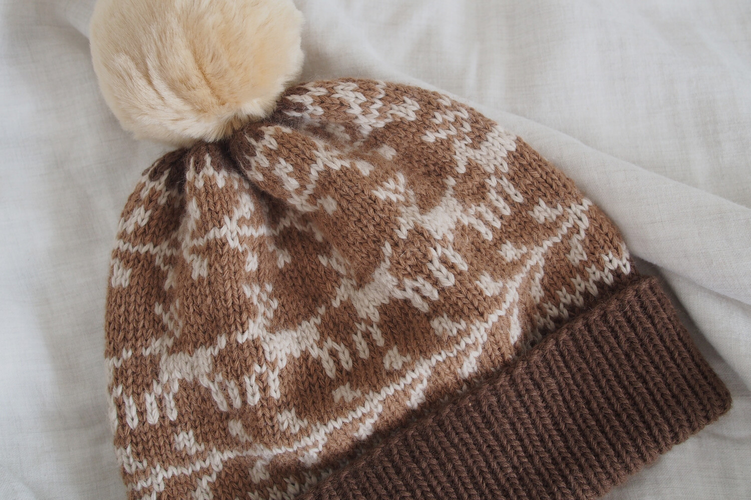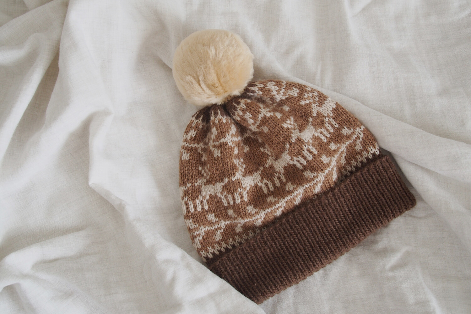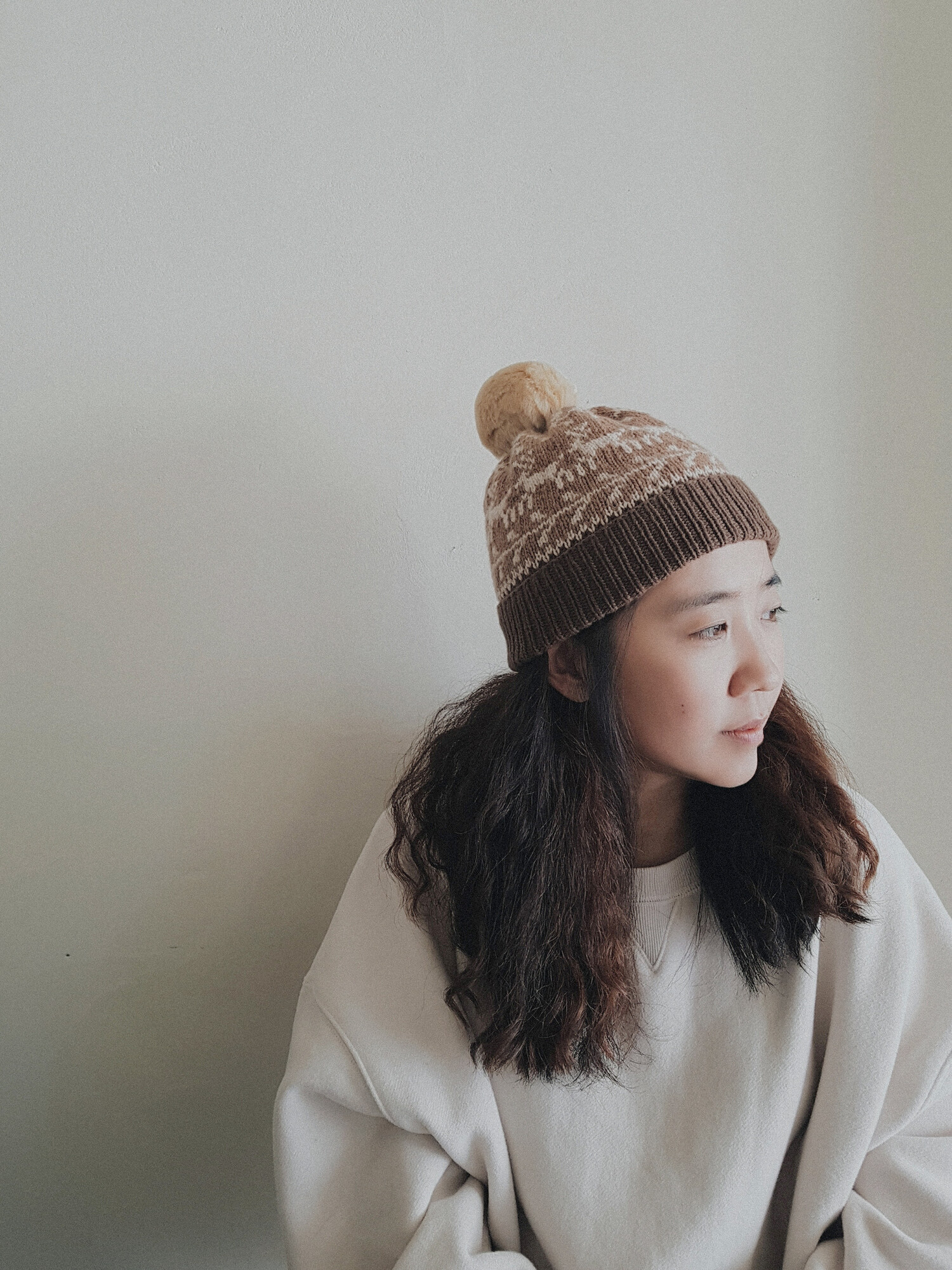 겨울 모자를 떴어요. 인스타그램으로 먼저 보시고 기다리고 계시는 분들도 계신데요. 따뜻한 브라운톤의 귀여운 모자입니다. 배색무늬를 넣어 뜨기 때문에 너무너무 재밌어요. 뜨시는 분에 따라 다르겠지만 저는 아래의 고무단부분이 살짝 지루하지만 재밌는 배색무늬뜨기를 기대하면서 열심히 뜨게 된달까요? 그래서 배색 부분은 진도도 팍팍 나가더라구요. 순록을 좀 귀여운 느낌이 들게 작업했더니 무척 마음에 들었어요. 뜨개제품은 뜨는 사람의 손에 따라 사이즈가 차이가 나긴 하지만 저나 친구에게도 잘 맞더라구요. 친구의 착샷도 잘 봐주세요.