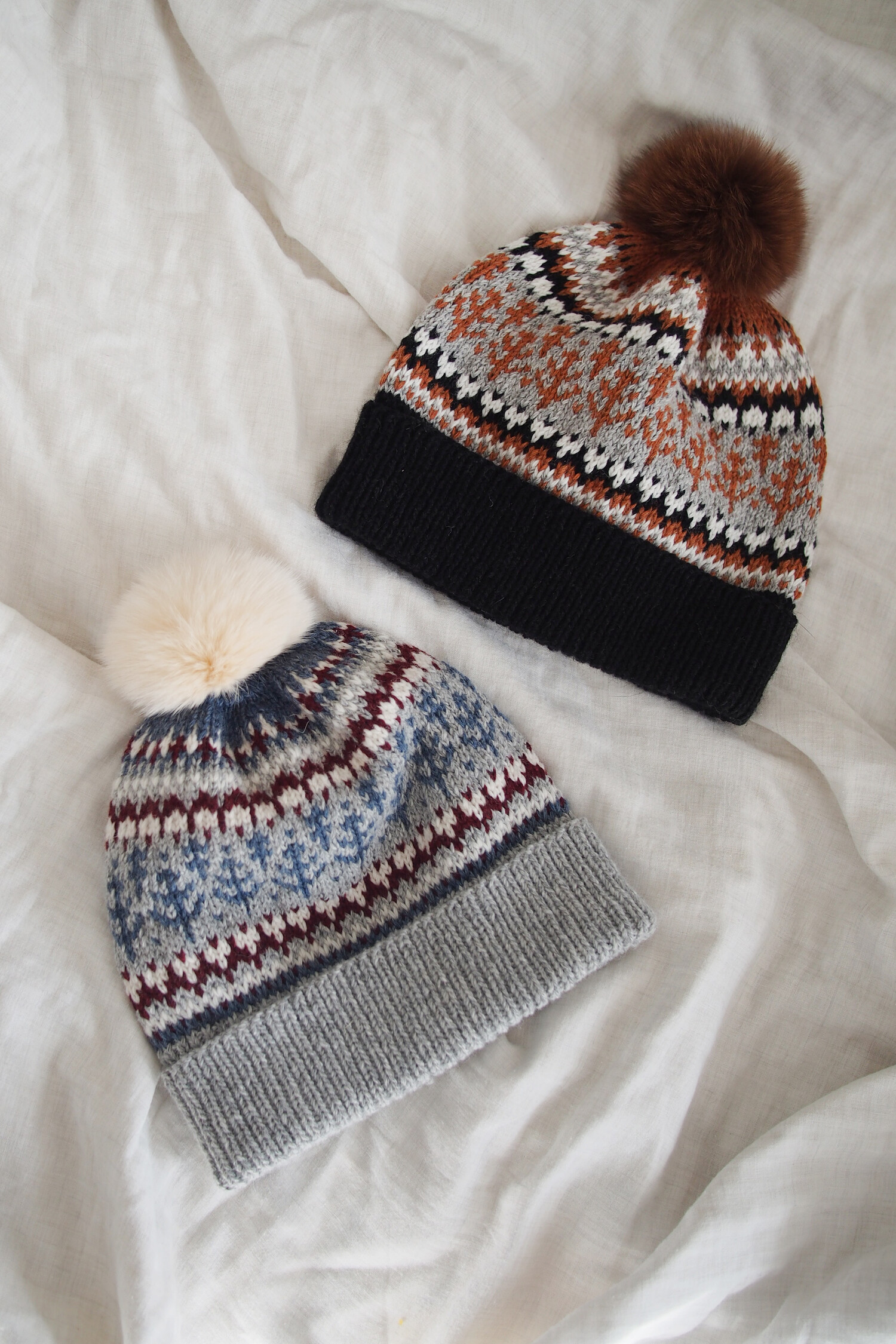 순록모자와는 구성이 좀 달라요. 컬러수도 그렇지만 가장 많이 소요되는 메인컬러가 제가 떴을 때 아주 딱 맞아 떨어져서 일부러 한볼을 더 넣어 구성했거든요. 그렇기 때문에 저랑 손이 비슷하시다면 두개 뜨실 수 있게 되는거구요, 그게 아니더라도 한 무늬정도 줄여서라도 하나 더 뜨실 수 있는 정도의 양입니다. 컬러는 선택하시되 도안은 두 컬러 모두 들어갈거예요. 그럼 이번에도 상세내용을 잘 읽어주신 후에 신중한 결정 부탁드립니다~