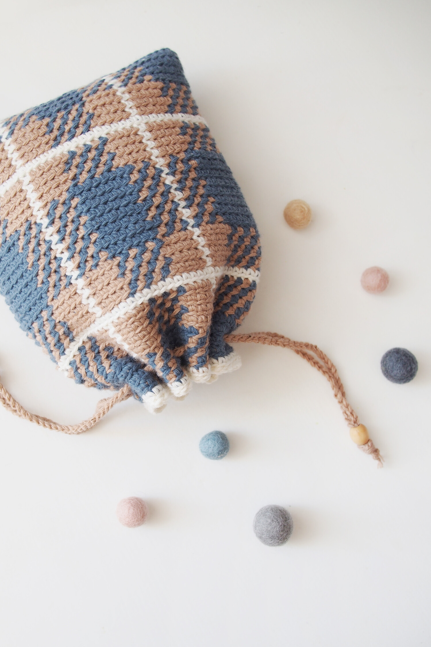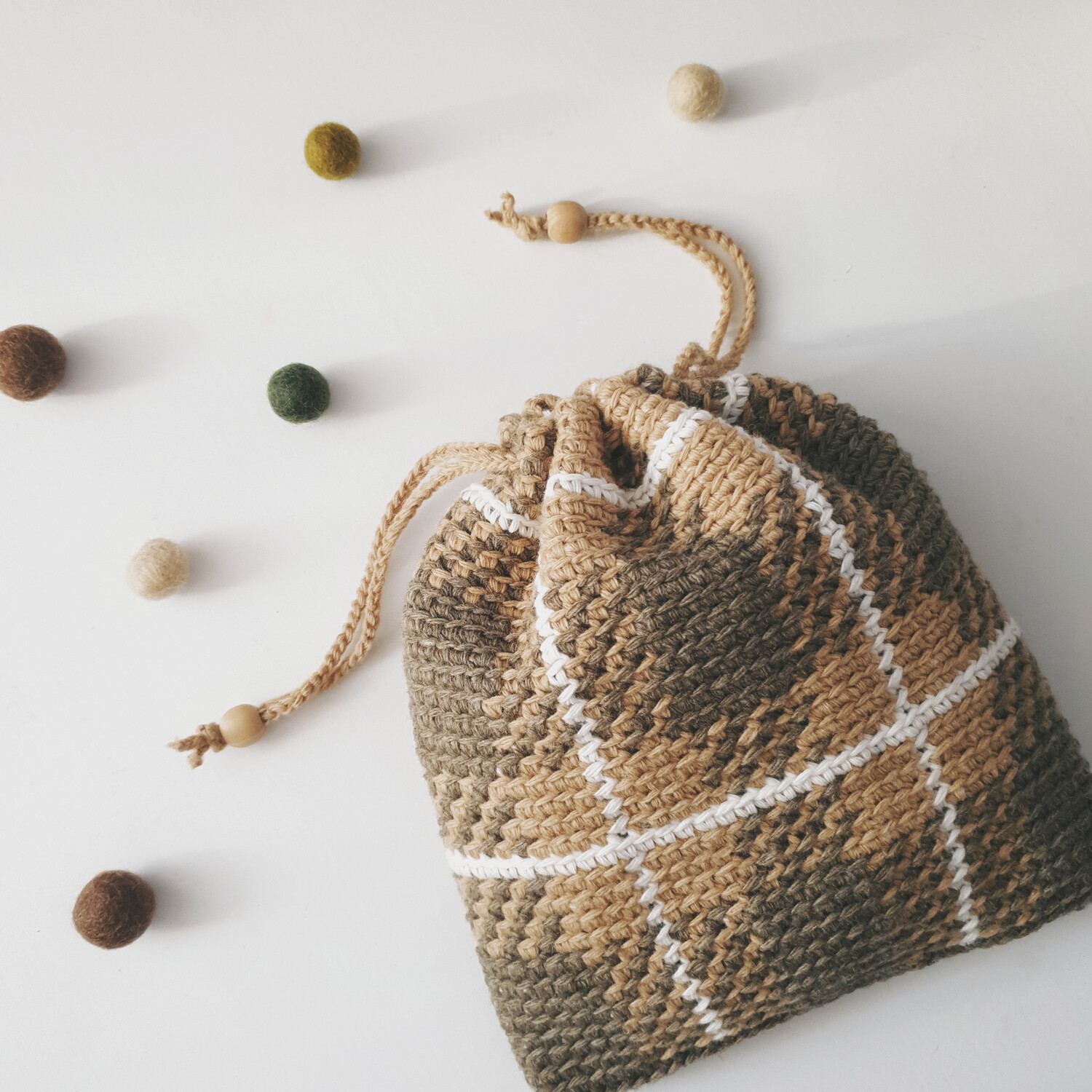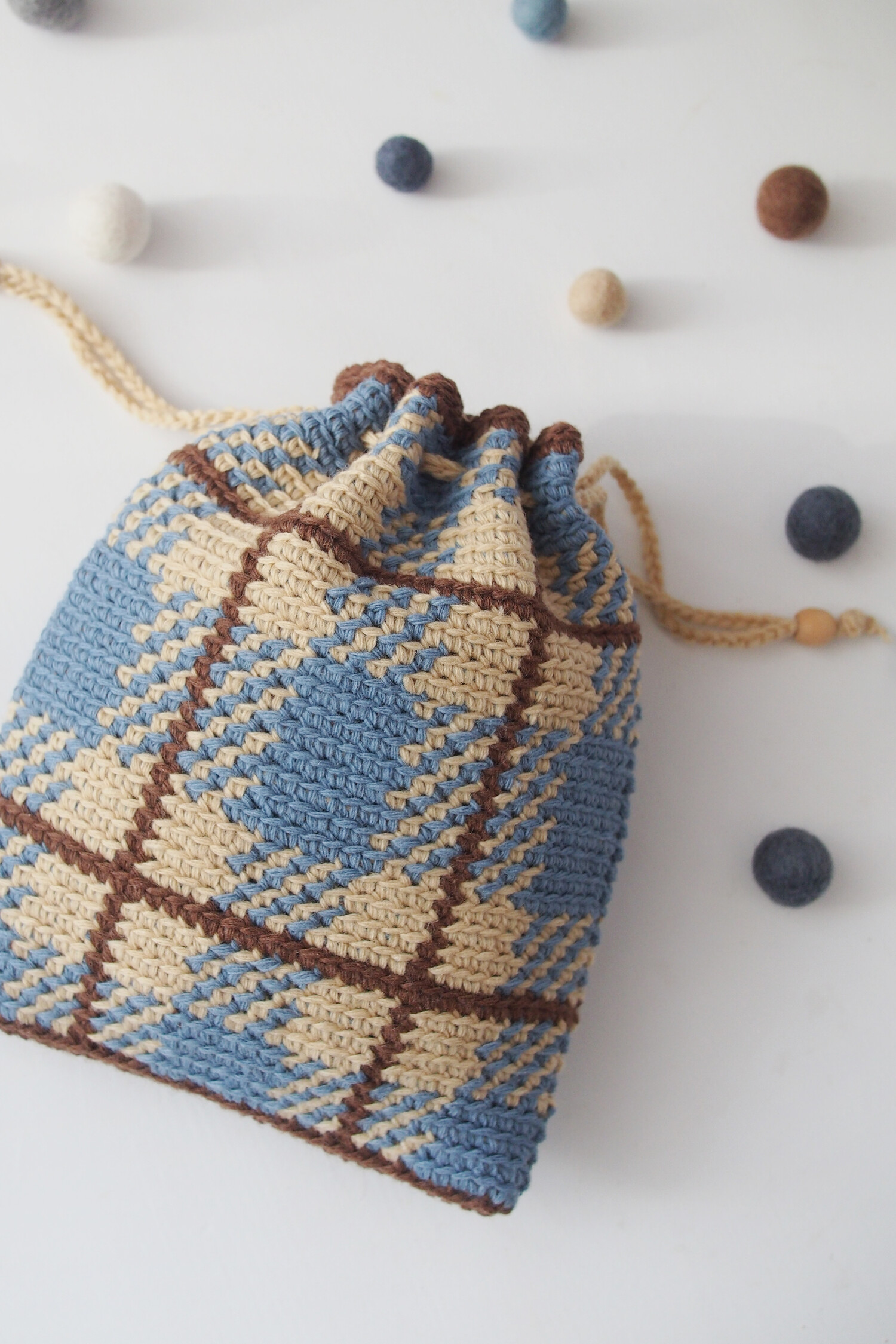 멜로닛츠18. 코바늘 체크 스트링 파우치