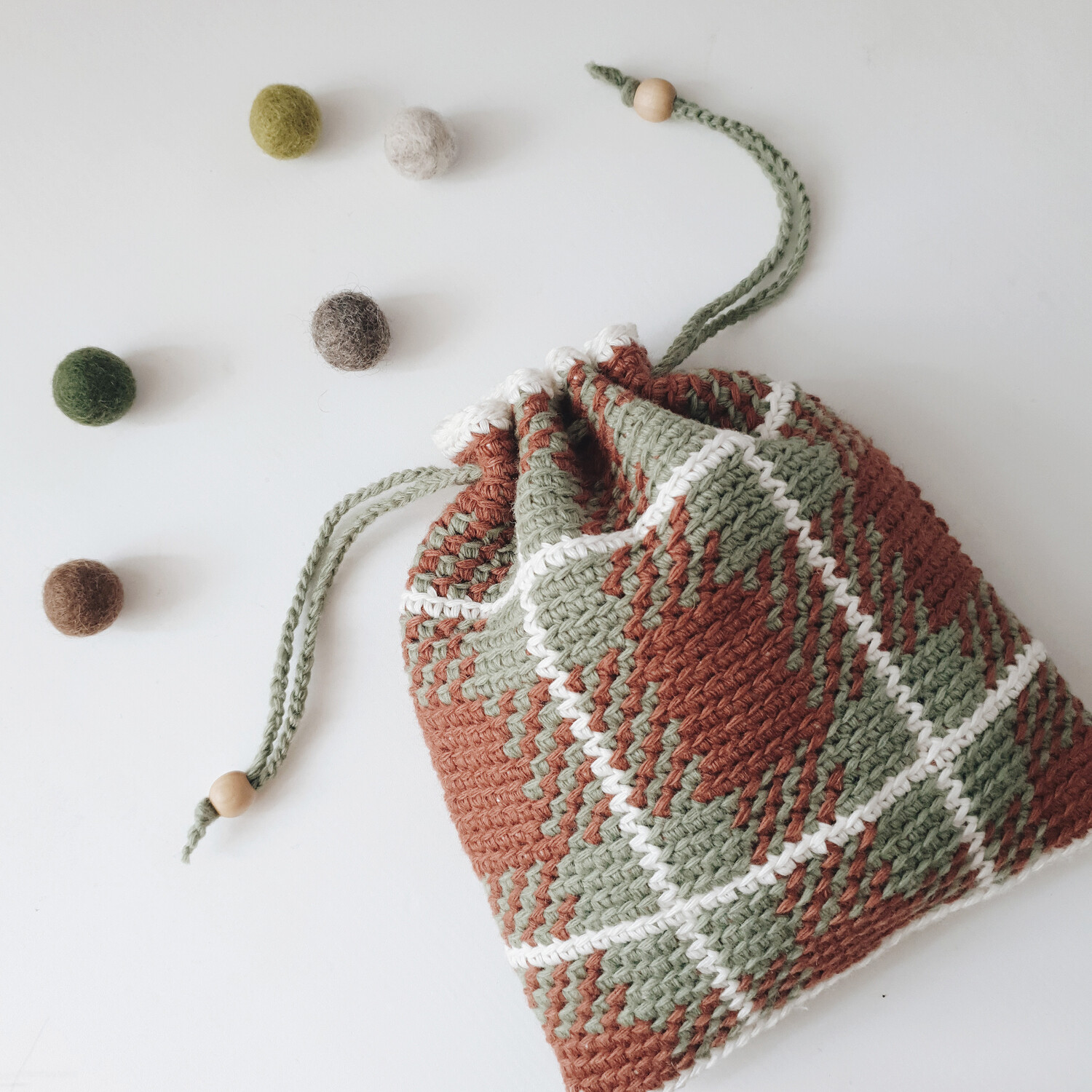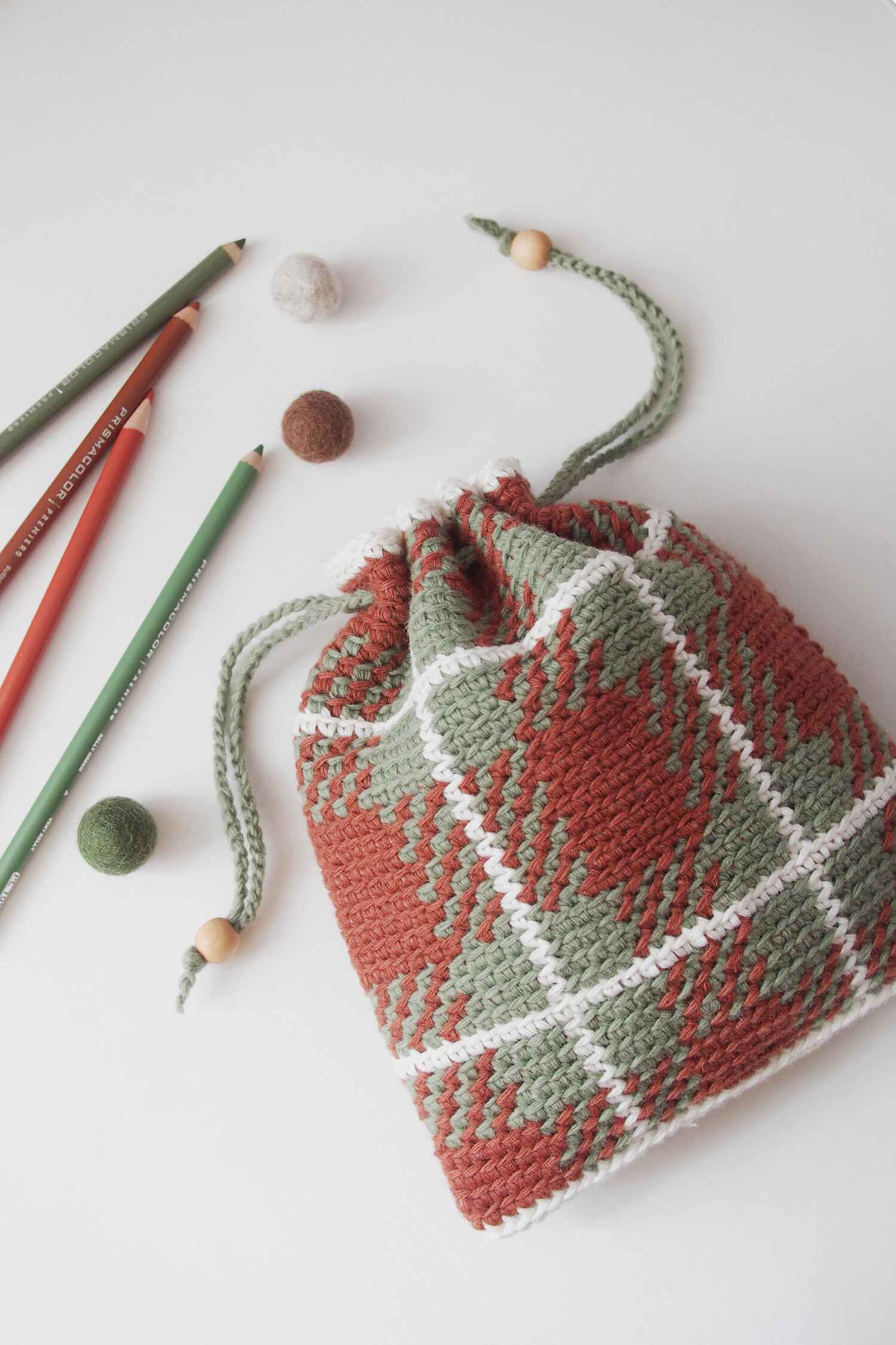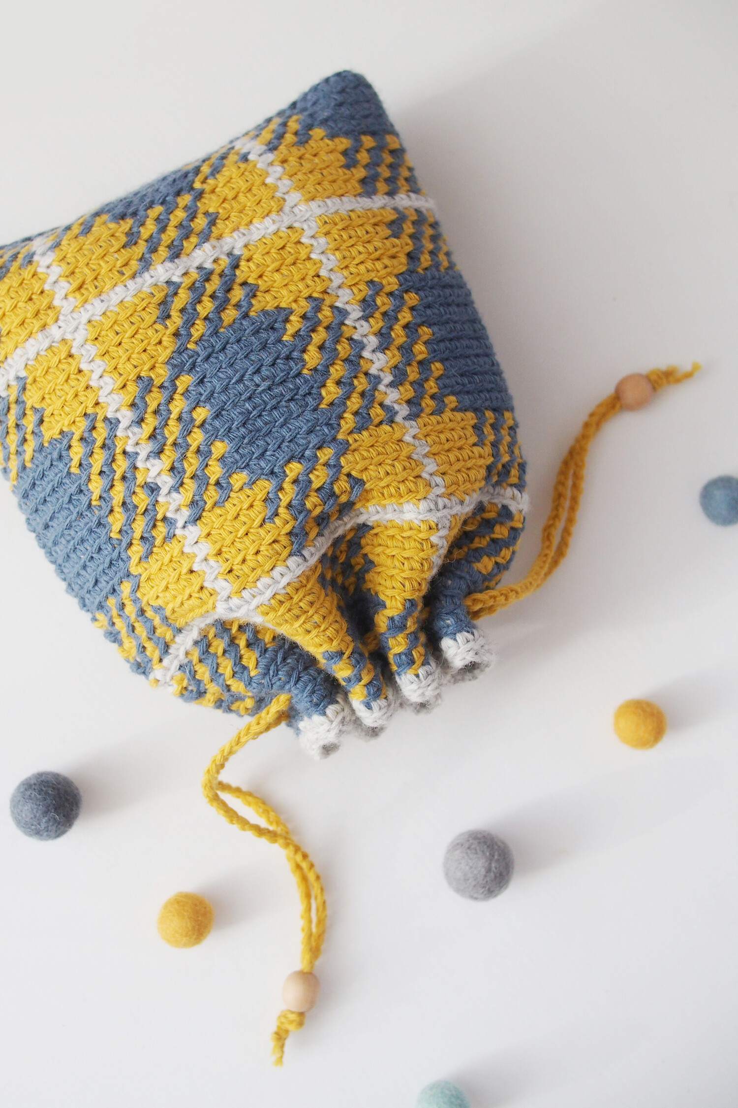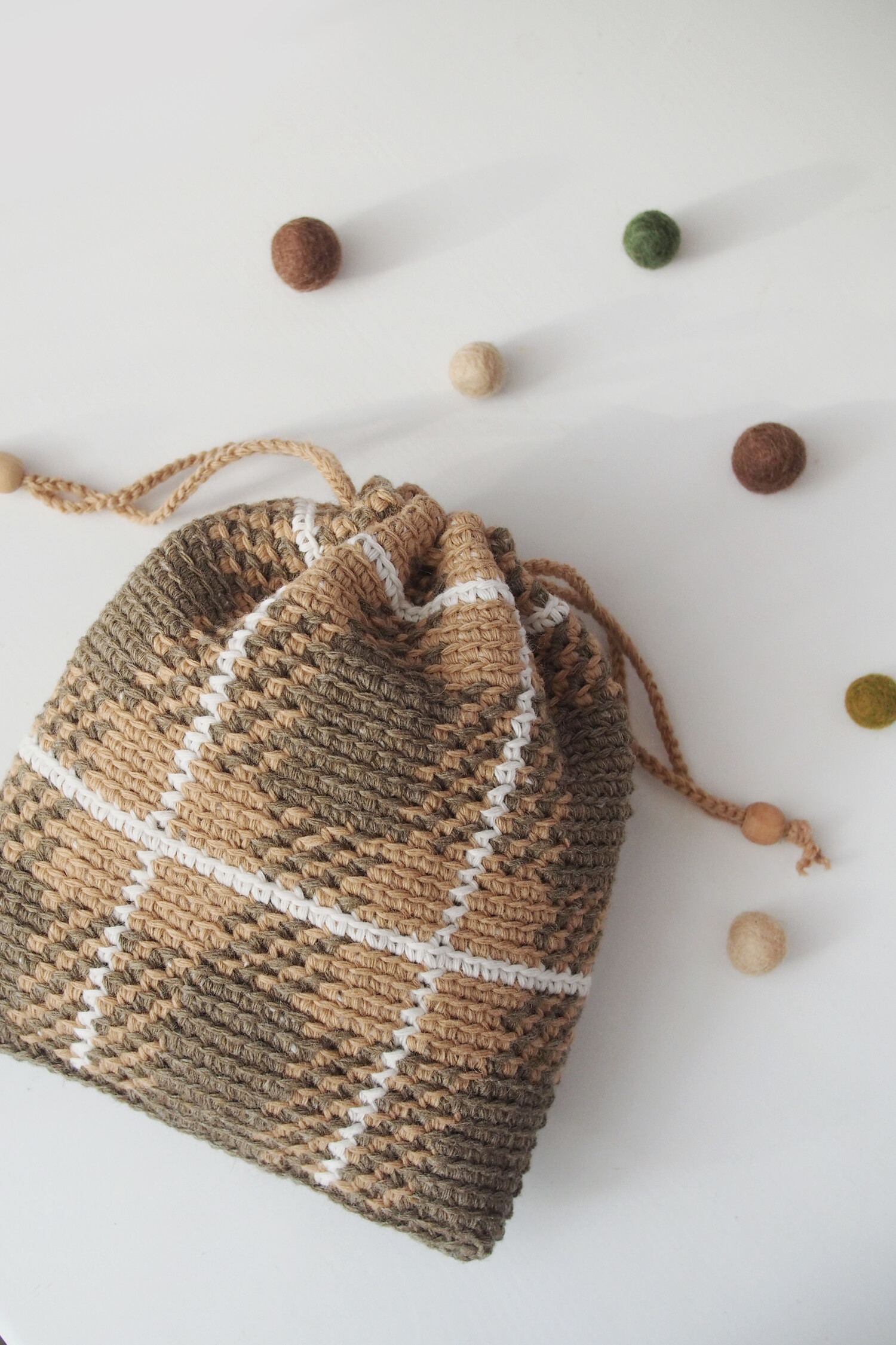 멜로닛츠18. 코바늘 체크 스트링 파우치