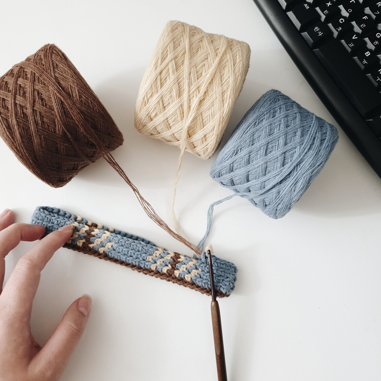 계획에 없었는데 무려 6컬러로 뜨게 된 멜로닛츠의 18번째 키트인 타탄체크 스트링 파우치입니다. 구하기 어려운 컬러라서 조금 욕심부려서 작업하게 됐어요. 지난번 17번째 키트인 윈도우패인 체크 스트링 파우치가 단순한 규칙의 재미가 있었다면 이번 타탄체크는 조금 더 복잡한 규칙의 재미가 있어요. 조금 더 더디고 복잡할 순 있지만 한 줄 한 줄 패턴이 보이기 시작하면 뜨는 뜨는 사람으로서 보람이 있다고 해야하나요? 저는 같은걸 계속 뜨는 걸 진짜 안 좋아하는 편인데요, 힘들기도하구요. 이번거는 6컬러를 그냥 달려버렸습니다. 그만큼 재밌다는거! 패턴은 세번정도 조절했어요. 사진을 보시면 패턴이 조금씩 다른 것을 보실텐데요, (카키베이지, 그레이차콜) 두가지 컬러는 초반에 이렇게 저렇게 조절해보면서 뜬거라 패턴무늬가 조금 다릅니다. 그 두가지 컬러 외 나머지 컬러들 패턴으로 도안확정했어요. 착오없으시도록 페이지 하단에서 확정된 패턴 확실히 확인해주시기 바랍니다. 가을겨울 시즌은 타탄체크의 매력이 배가 되는 시즌이잖아요. 소지품 파우치로 가방에서 매력, 센스 다 발휘할 녀석이에요. 소량이긴 하지만 다양한 컬러감으로 준비했으니 도전하세요!!