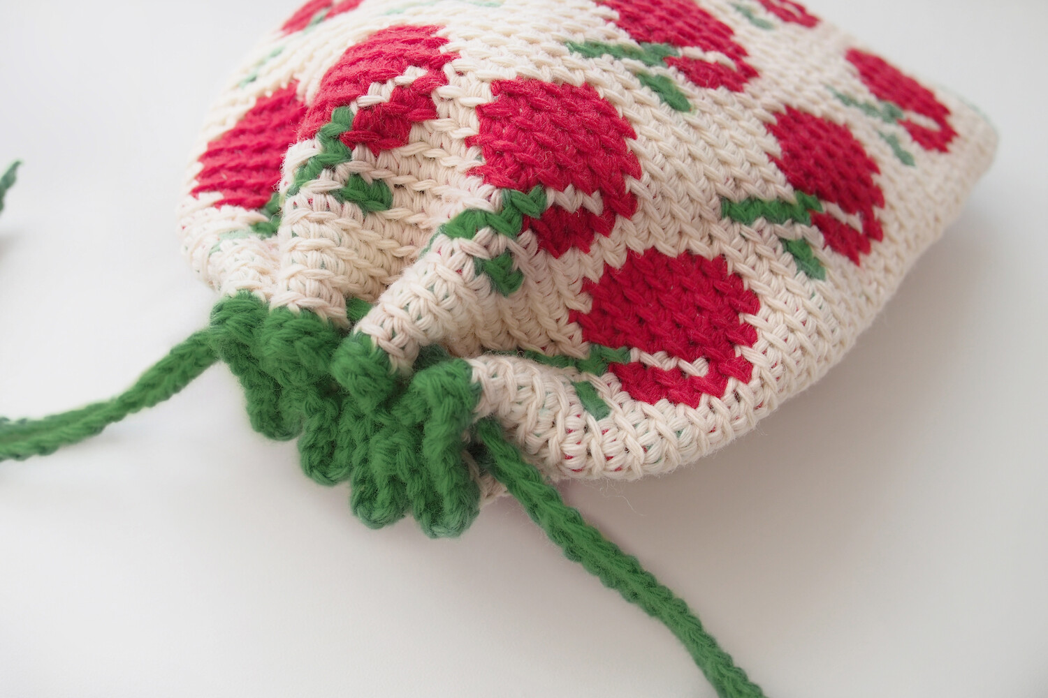 안녕하세요, 멜로닛츠입니다. 코바늘로만 진행했던 사과 파우치를 아쉬운 마음에 대바늘로도 작업했어요. 코바늘과 대바늘은 아무래도 게이지 차이가 나서 패턴이 살짝 달라요. 대바늘 사과는 또 다른 귀여움이 있네요~ 이번엔 지퍼타입으로 진행합니다. 서양배나 도토리 파우치를 뜨신 분들은 무리없이 뜨실 수 있을거예요~ 대바늘 사과도 함께 수확해봅시다! 살짝 크림색이 도는 바탕컬러에 선명한 빨간사과, 그리고 빈티지한 그린컬러의 조합입니다. 빈티지한 감각으로 작업했는데 기존색상이 다 소진되면 추후 재입고 시에는 색상 변경이 있을 수 있음을 미리 알려드려요.