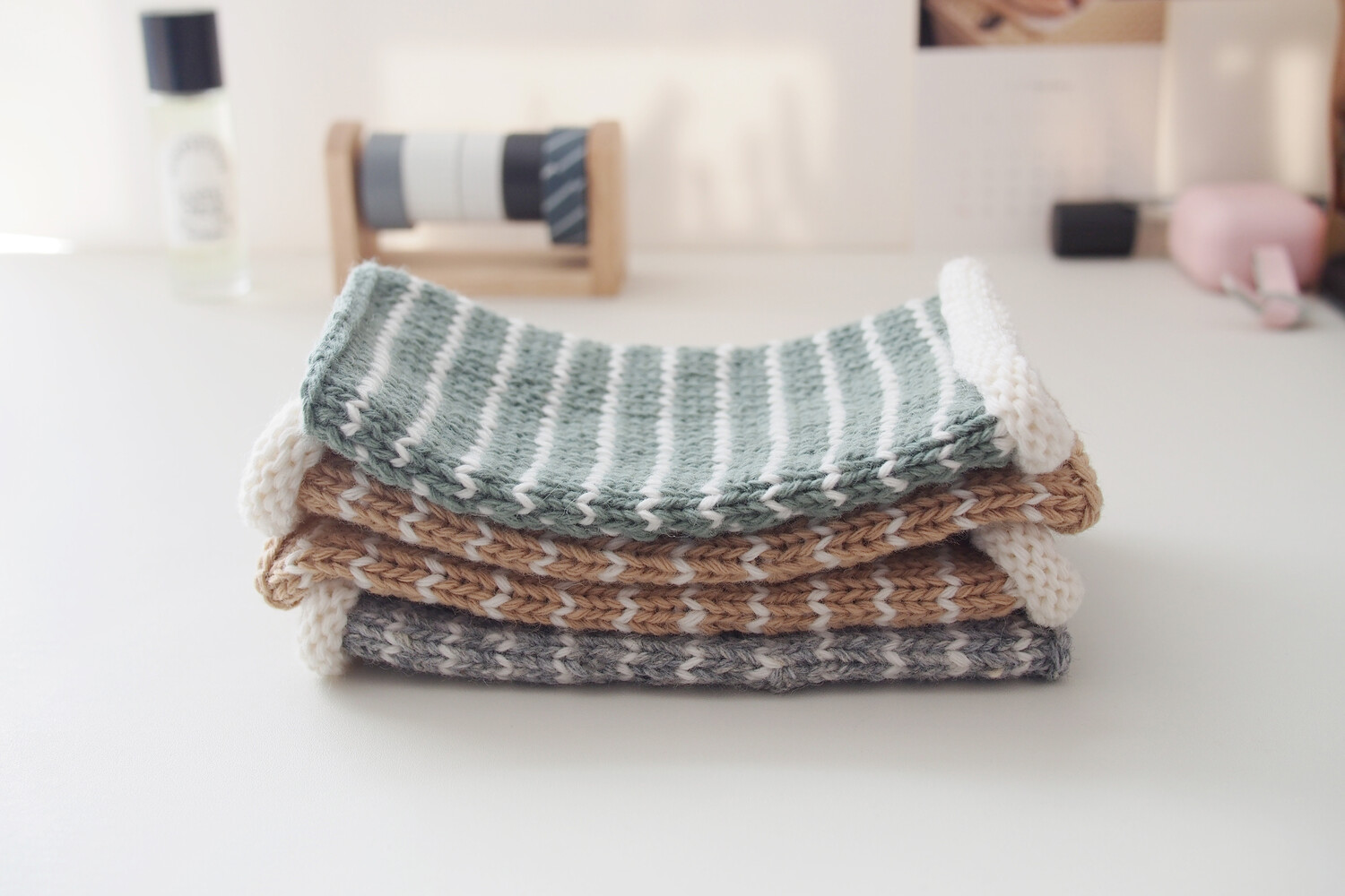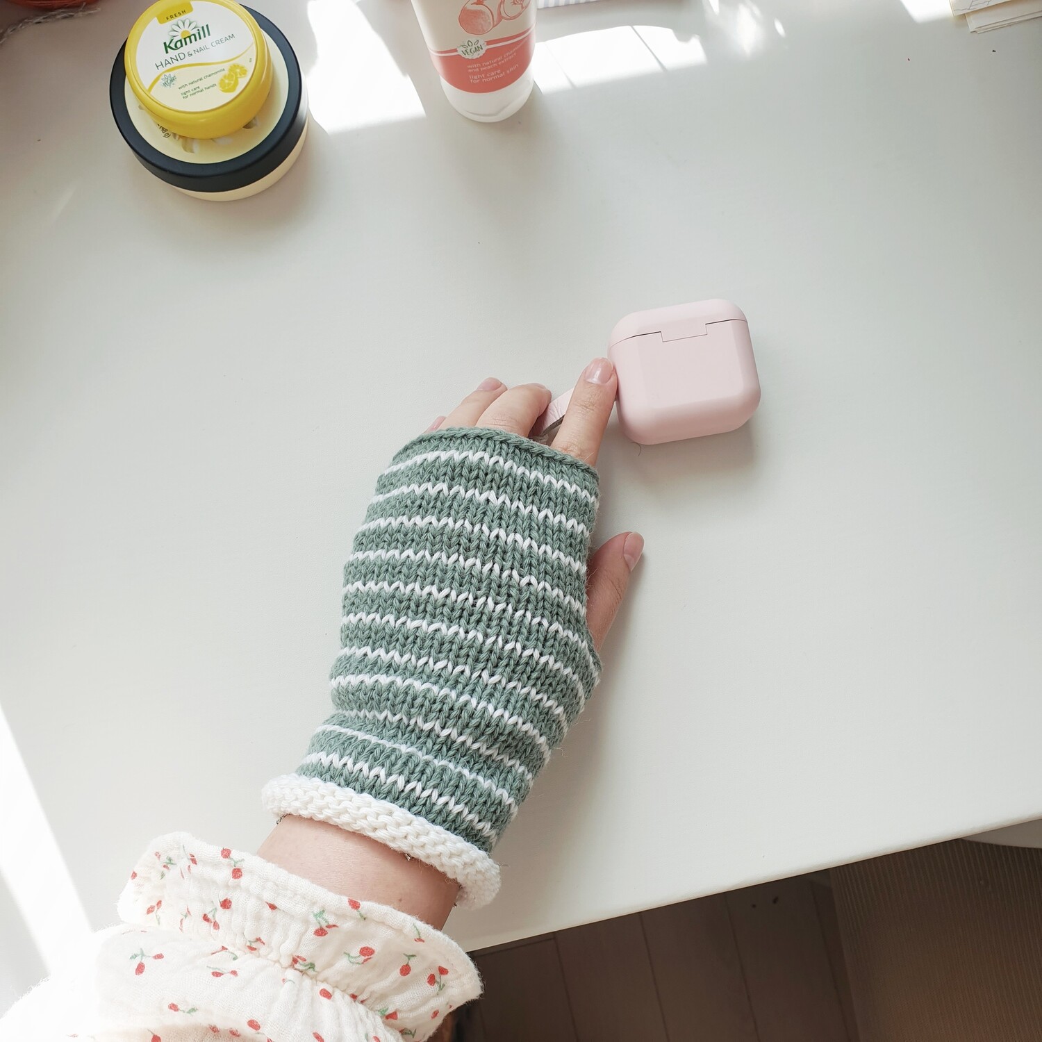 눈꽃 핸드워머보다 난이도가 낮은 핸드워머 키트를 하나 만들고 싶어서 시작하게 된 도로롱 스트라이프 핸드워머입니다. 두 컬러를 함께 뜨는 배색뜨기가 아니라서 원통뜨기 연습하며 뜨기 좋은 핸드워머입니다. 복잡하지 않은, 심플한 스트라이프 패턴이라 손 크기에 따라 콧수 조절이 쉬워서 좋구요. 도로롱 말리는 손목 부분이 귀여운 핸드워머 입니다. 단순해서 금방 뜰 수 있어요.